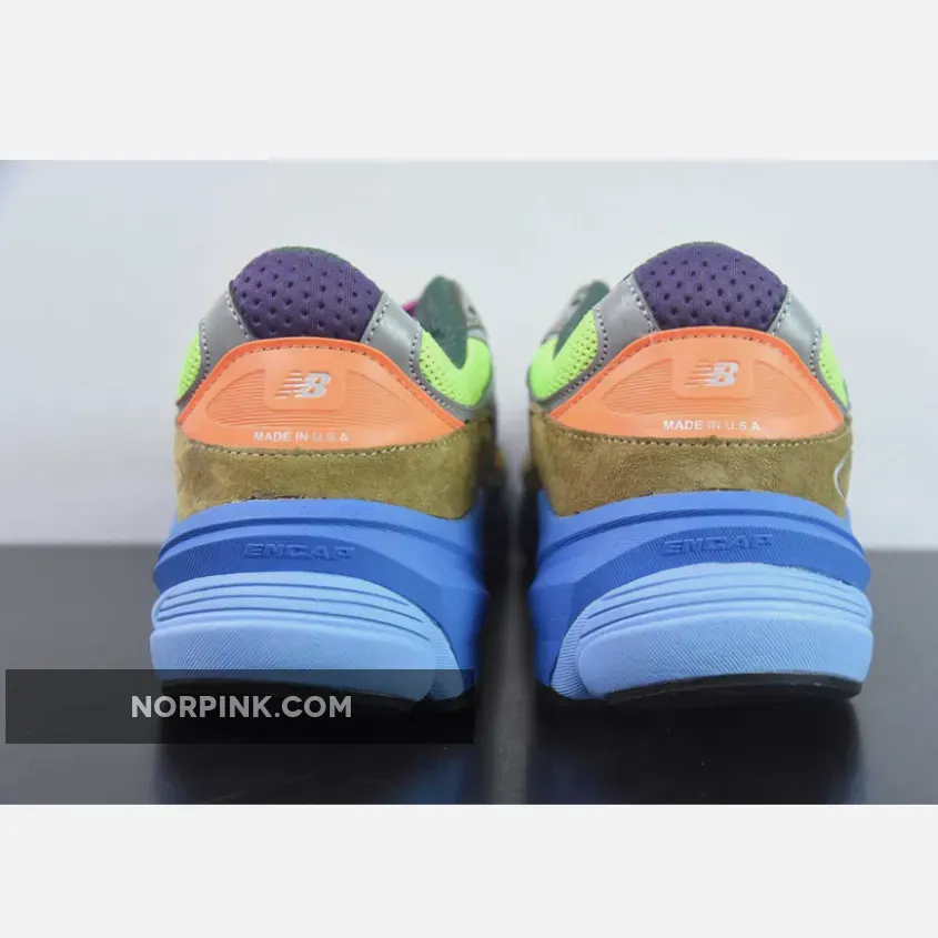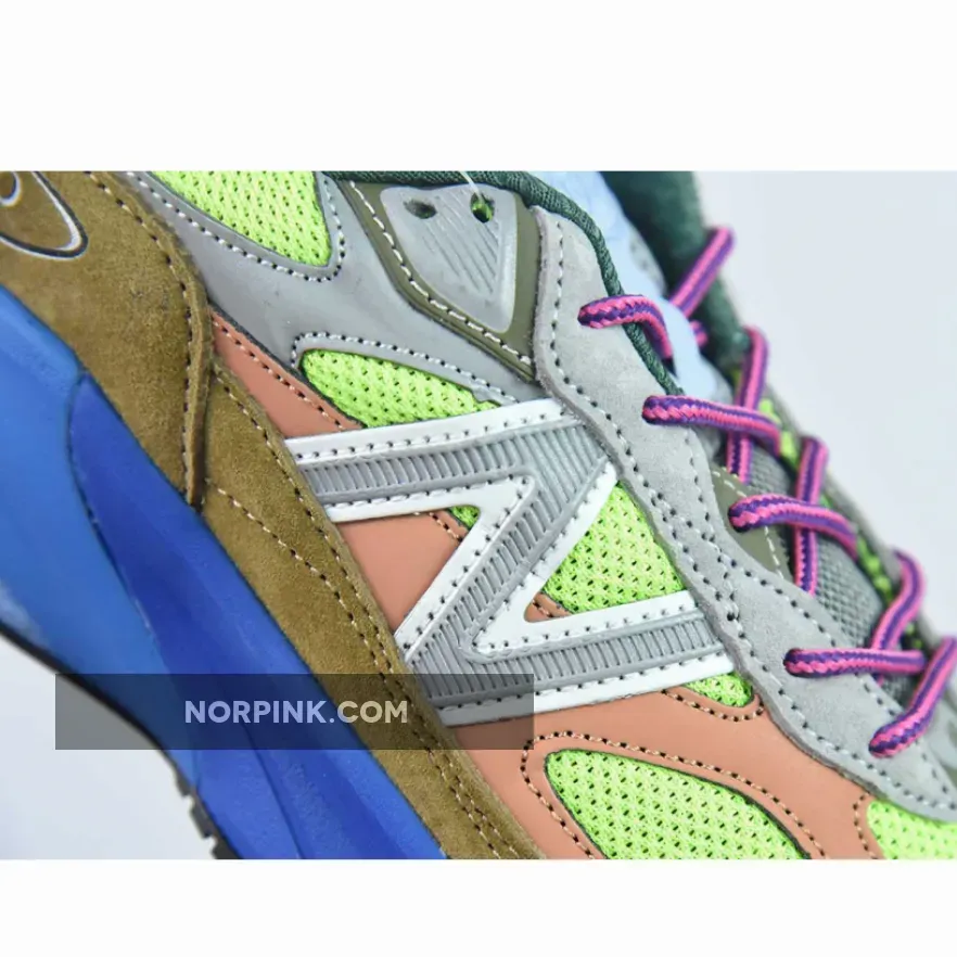 Dressed in a Multi-Color blocking. The rapper describes the innovative shoe as a synergy of colors representing the ocean, the earth, and the sky. This offering of the Action Bronson x New Balance 990v6 comes constructed in a mix of mesh, leather, and suede materials. Neon Green covers most of its upper while having Pink/Purple rope laces, Brown mudguards atop a Blue two-tone midsole and Black rubber outsole. “Baklava” branding on the tongues, insoles, and shoebox with Made in USA printed on the heels completes the design.