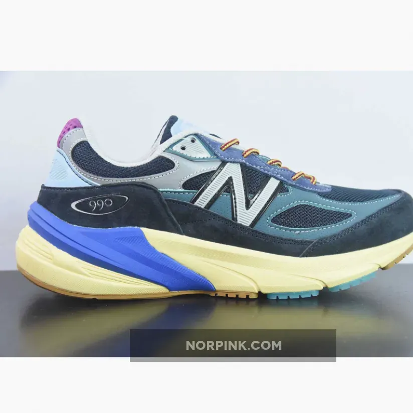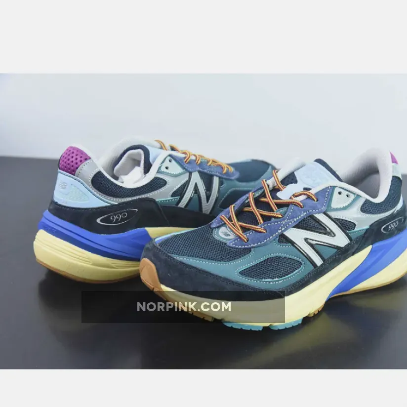 Dressed in a mix of Blue, Navy, Tan, and Cream color hues. This offering of the Action Bronson x New Balance 990v6 comes constructed in mesh, leather, and suede materials. It features a Black mesh base with pigskin suede mudguards and eyestays while having Teal and Silver Grey leather overlays with a Magenta hue appearing on the heels. Other details includes Light Blue tongue labels and heel counter with construction “worker” boot laces atop a two-tone midsole a Gum rubber outsole. “Baklava” branding on the tongues, insoles, and shoebox with Made in USA printed on the heels completes the design.