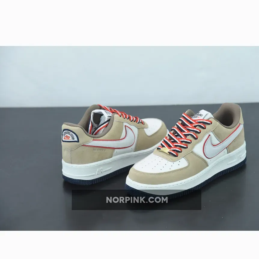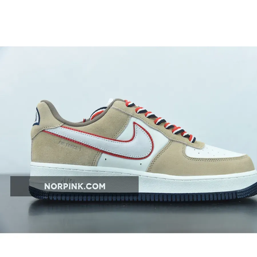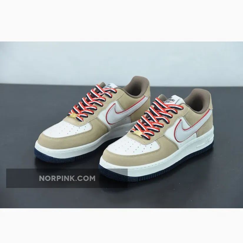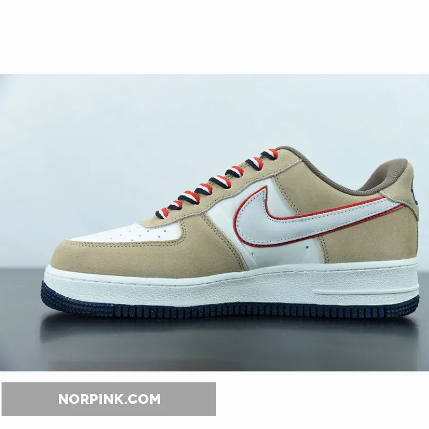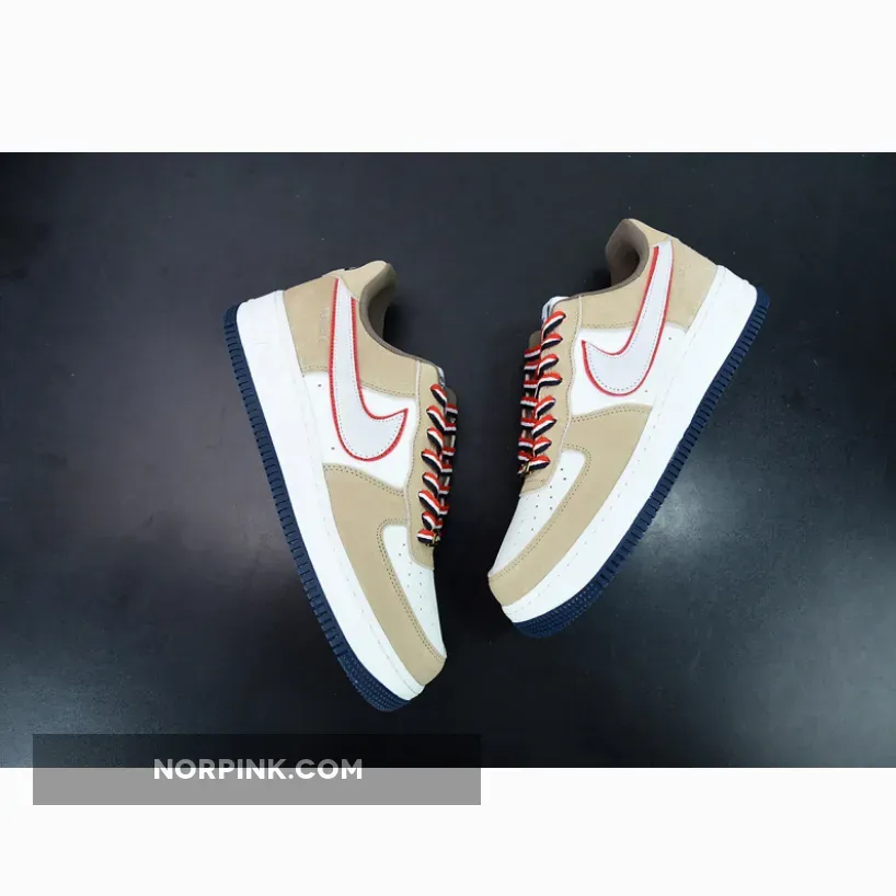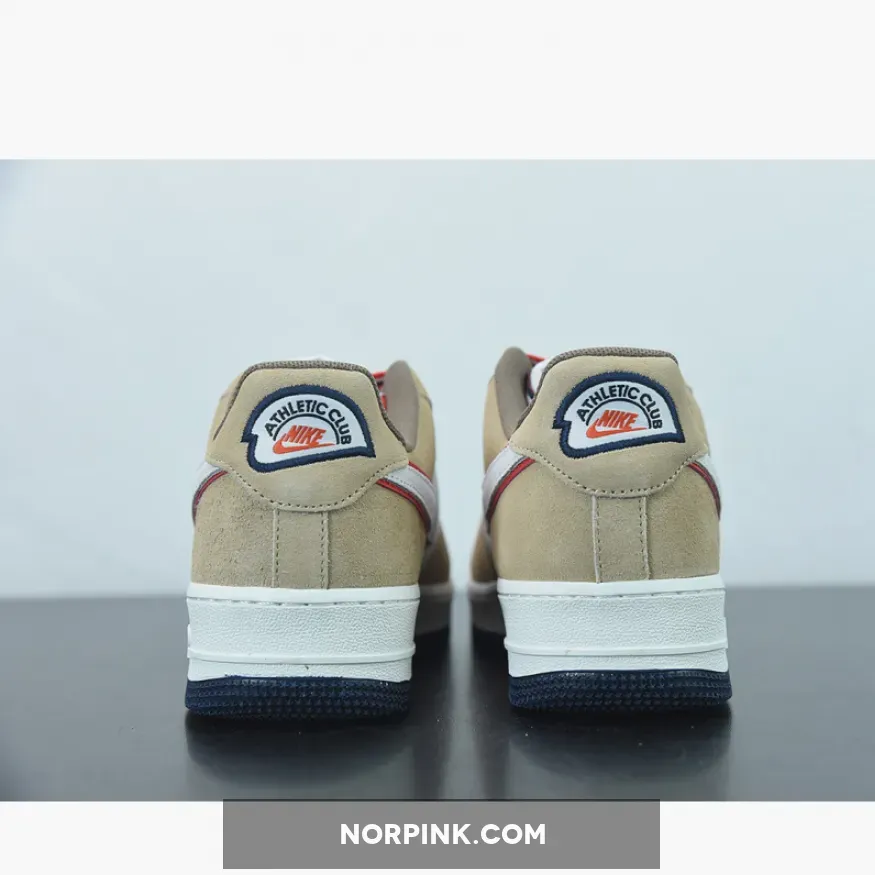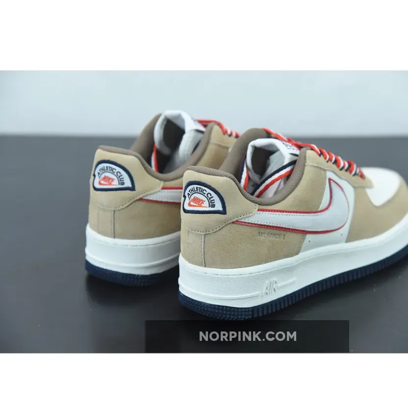 The Nike Air Force 1 goes retro, harking back to the days of community gymnasiums from the 70s and the 80s. The Nike Air Force 1 Athletic Club Sail Orange Khaki reflects just this aesthetic.