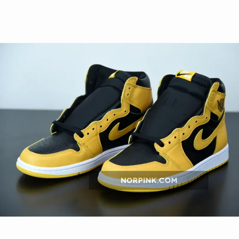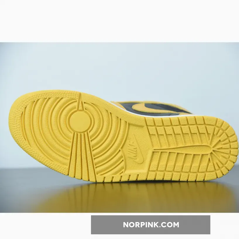 creating an obvious resemblance to the mythical Wu-Tang Clan-inspired Nike Dunk High from 1999. And while the bumble bee-appropriate color scheme isn’t new to the Air Jordan 1 family, it’s appearance on the tallest iteration of #23’s first signature sneaker is refreshing.