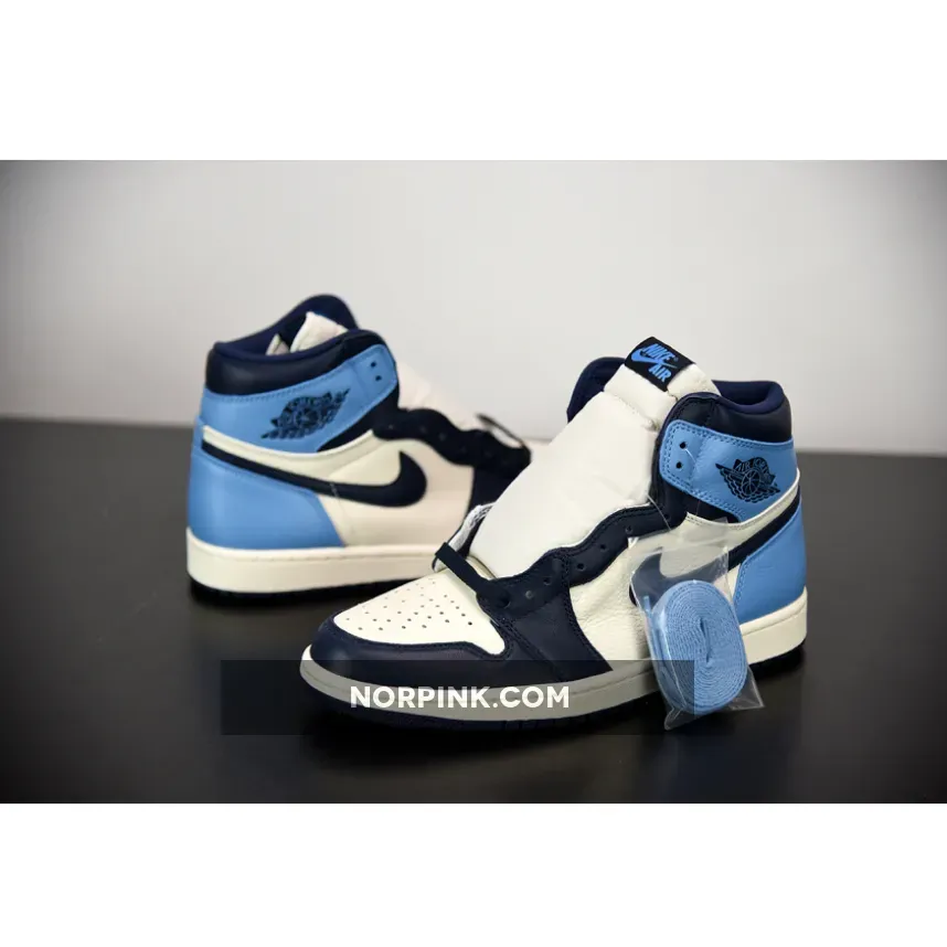This Air Jordan 1 comes dressed in a Sail, Obsidian and University Blue color combination. Resembling the ‘UNC Patent’ that released during February, however this pair lacks patent leather and comes with leather. Sail lands on the panels, tongue, toe box and midsole while University Blue wraps the heel and collar overlay. Finishing the look is Obsidian which lands on the overlays, laces and outsole.