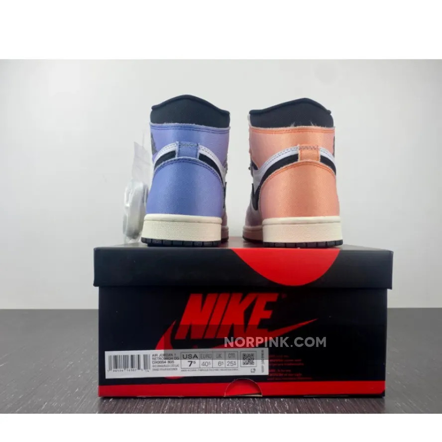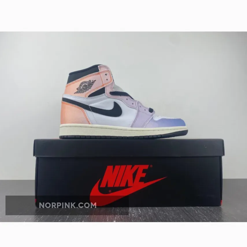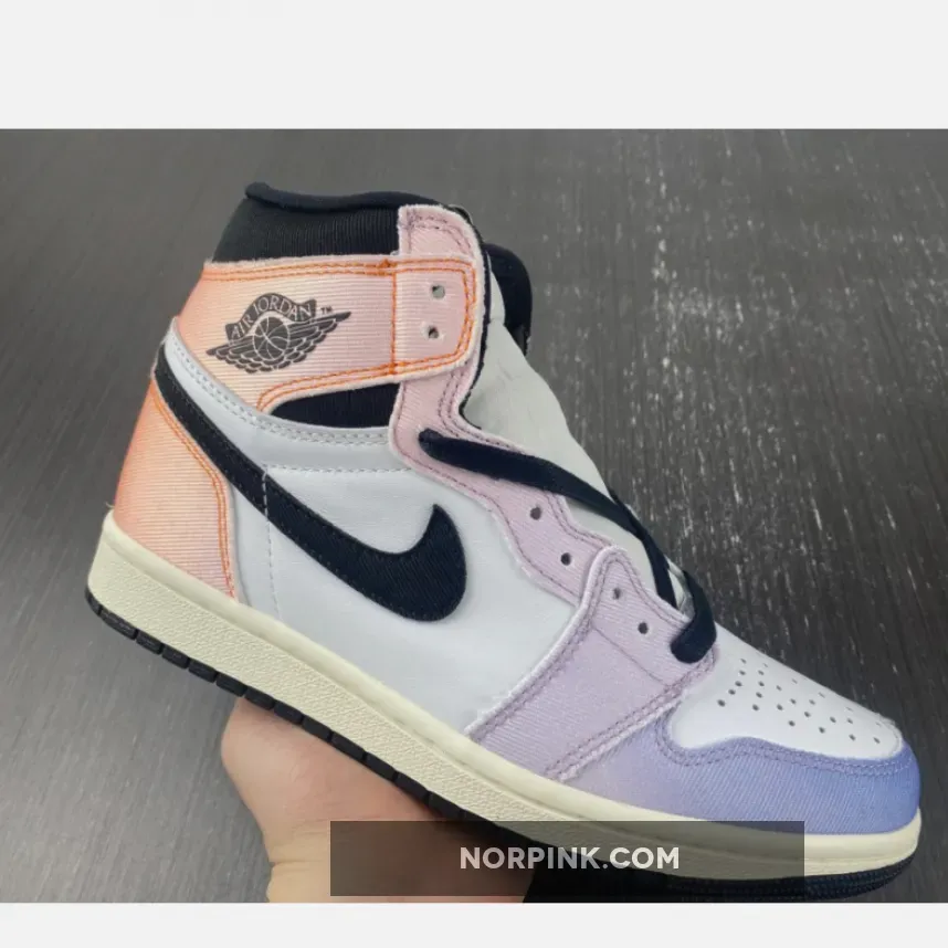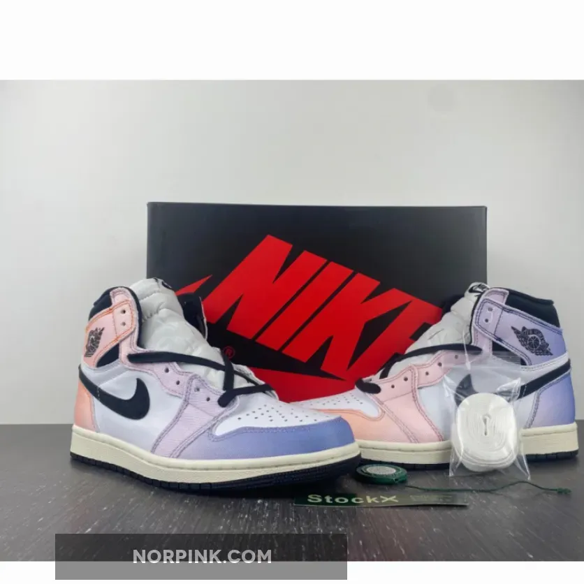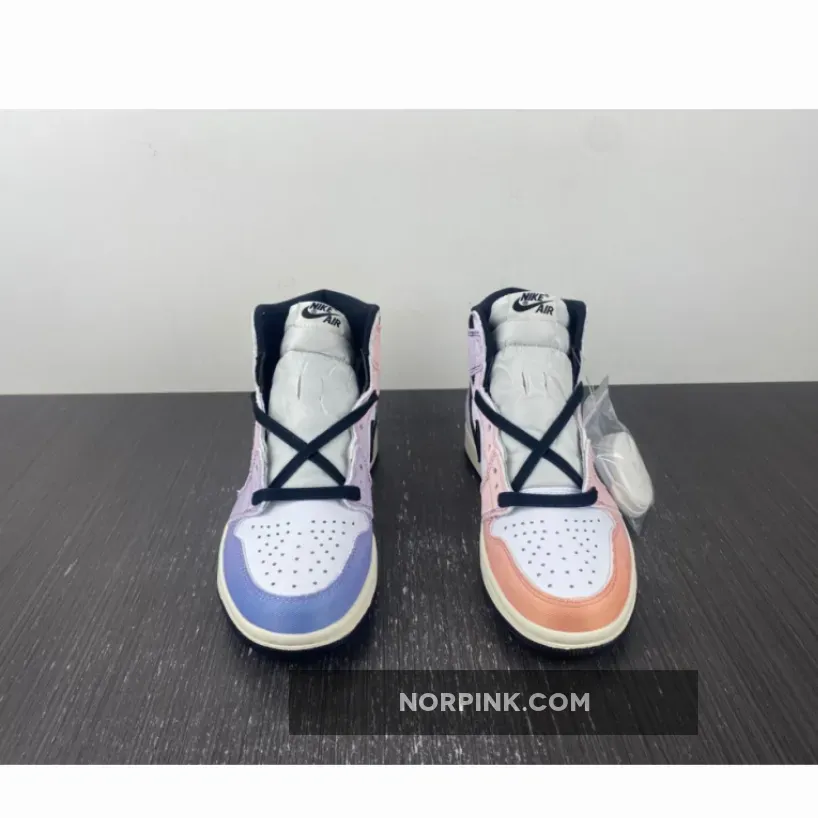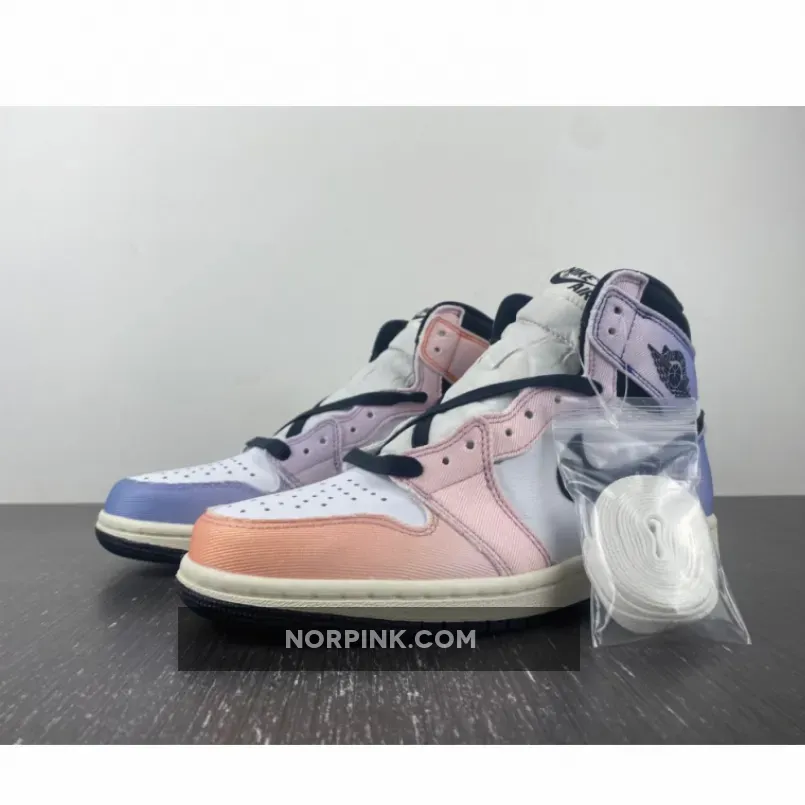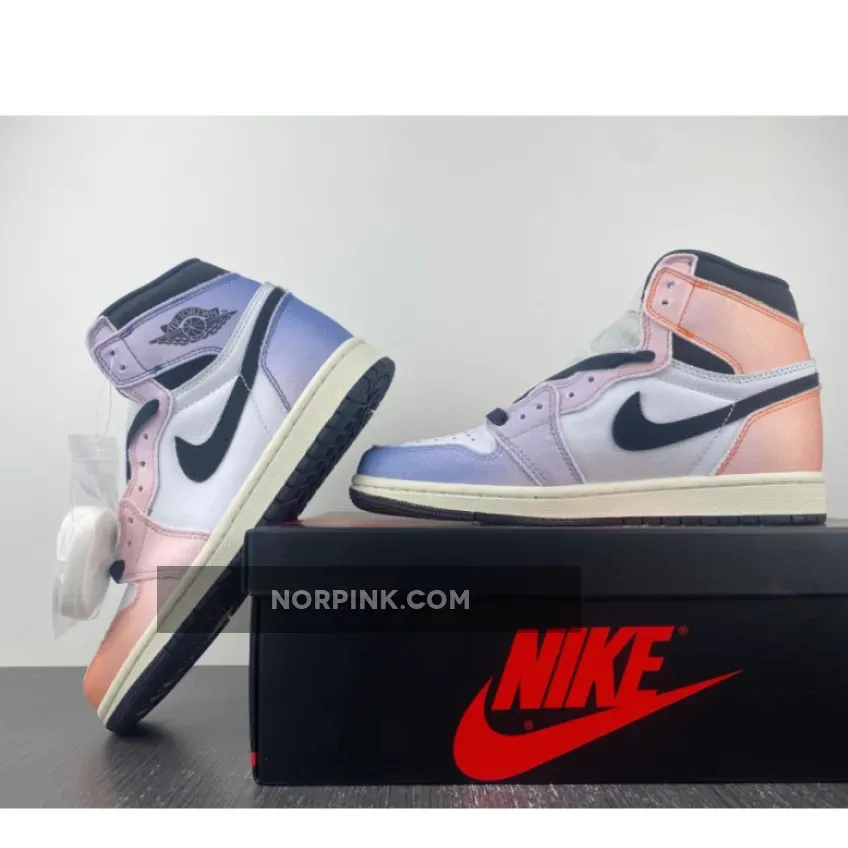 this pair is said to draw inspiration from the classic promotional image for the original Air Jordan 1 that saw Michael Jordan in his Jumpman pose against Chicago’s skyline at sunset, hence the pink to purple gradient overlays.