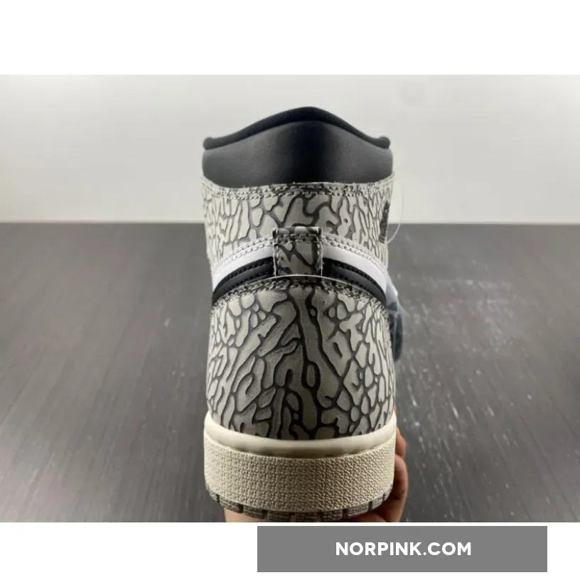 this presentation of the sneaker notably combines a traditional white leather base with gray elephant print overlays. The cement-colored choice first appeared on the Air Jordan 3 in 1988, with its appearance on sneakers outside of Tinker Hatfield’s creation being scarce over the last 34 years. Black continues the monochromatic outfitting of the shoe at the leather Swooshes, laces, Wings logo and collar while a gray rubber outsole rests beneath a “Sail” midsole to complete the look.