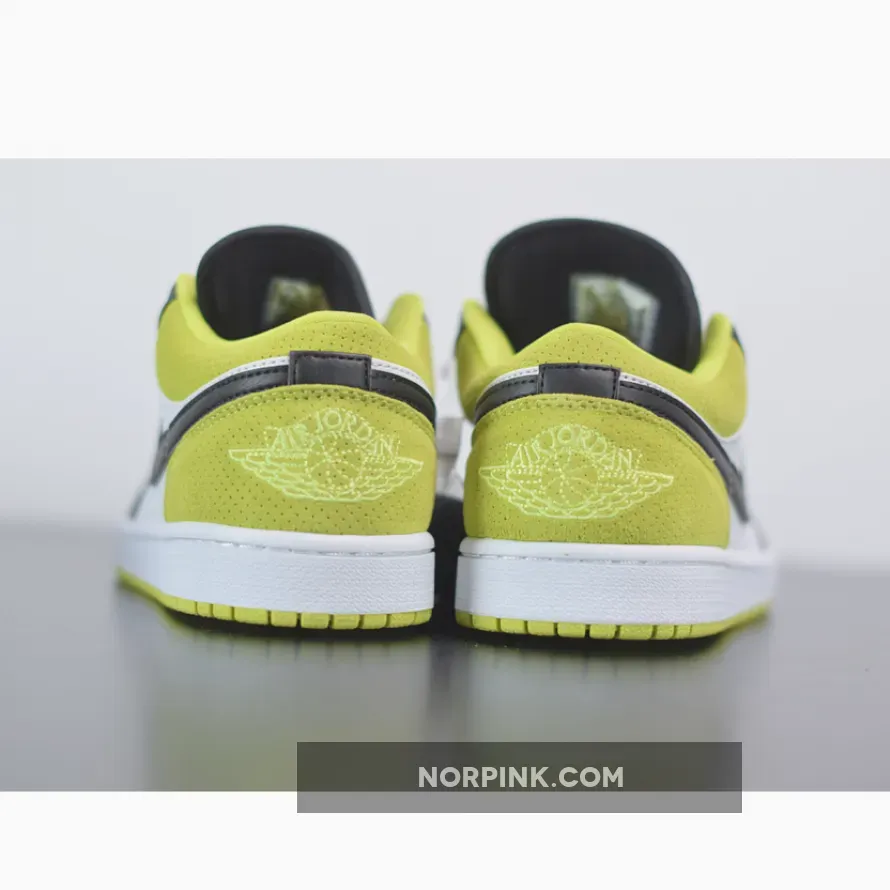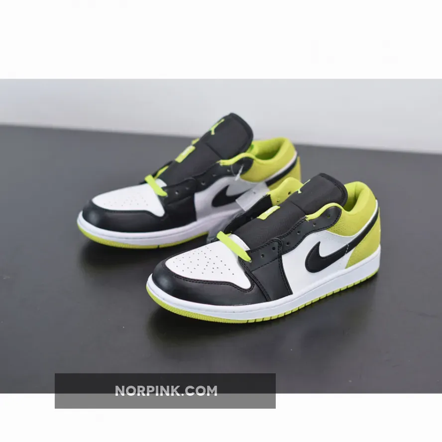 “I’m loving my new Air Jordan 1 Low ‘Black Cyber’! ? The sleek white leather and black overlays look sharp, while the cyber green accents add a pop of color. Comfortable fit and great traction too ?♂️. Definitely a solid buy!”