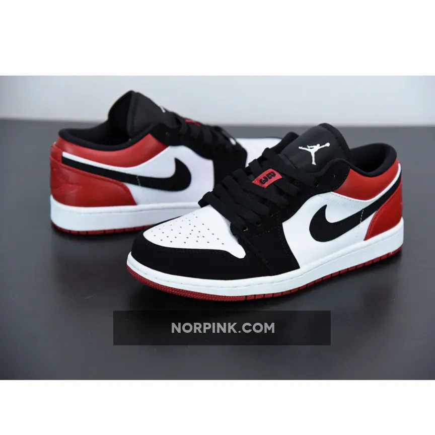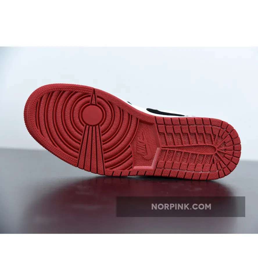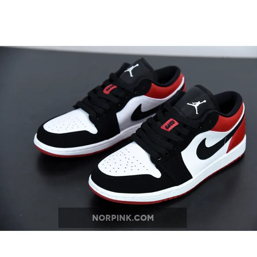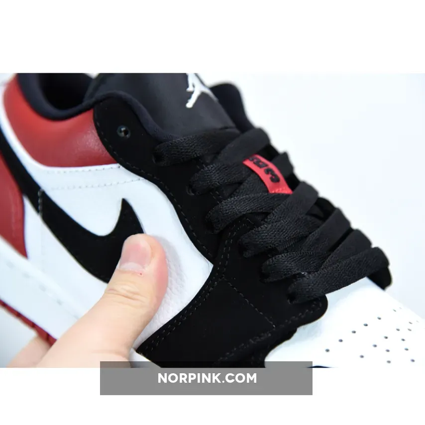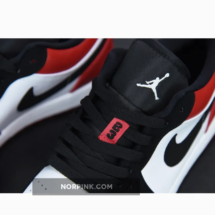 As one of the 10 original Air Jordan 1 High colorways to release in 1985, the “Black Toe” has always been immensely popular, and this new 1 Low keeps most of the OG detailing intact — but does add a few small tweaks. White leather is used as the base, while a combination of red leather and black nubuck — in place of the standard black leather used on the high-top version — provide accents. There’s a few alternate branded hits present as well: a white Jumpman logo appears on the black tongue, a tonal stitched ball-and-wings logo graces the heel, and the tongue’s lace holder offers an extra hit of gym red