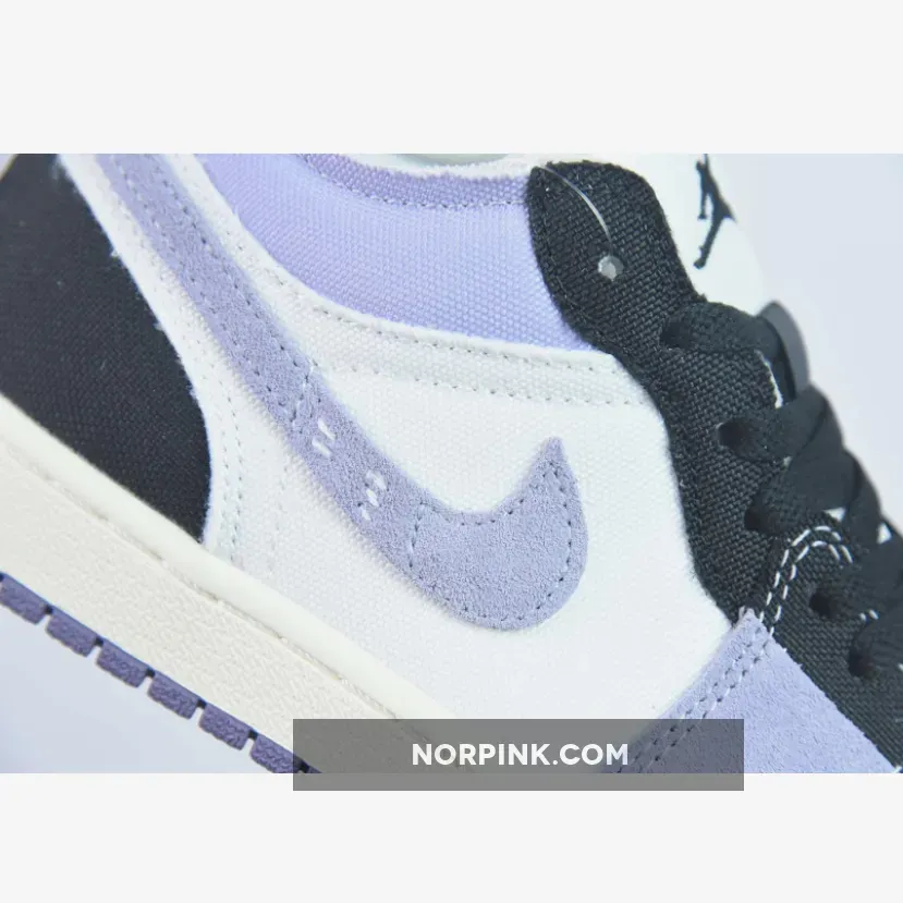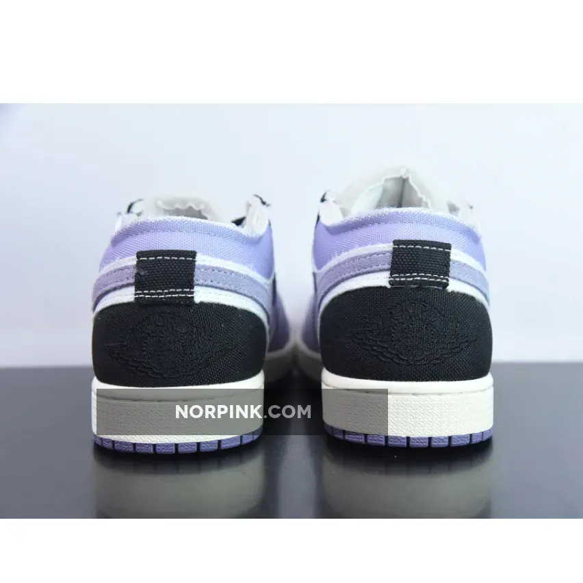 This Air Jordan 1 Low is crafted from canvas and suede materials, along with exposed foam on the collars and tongues.