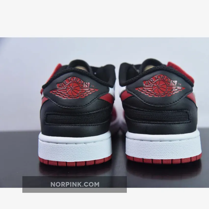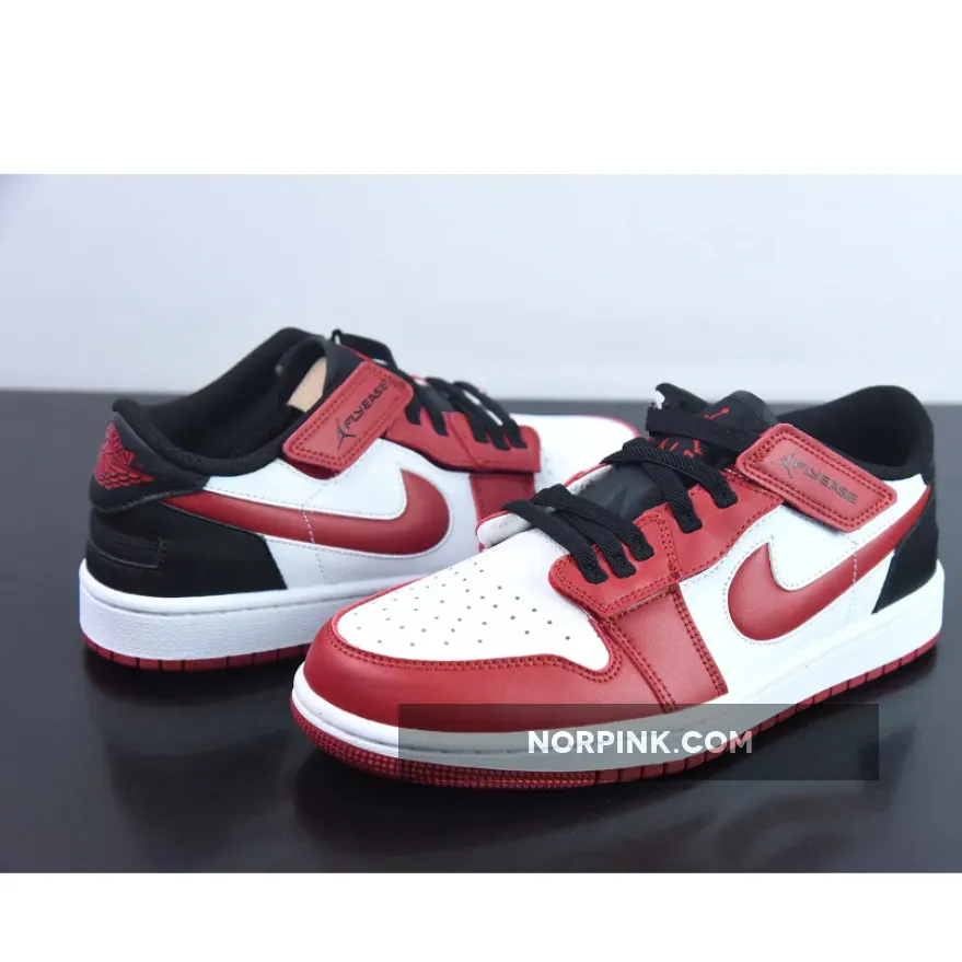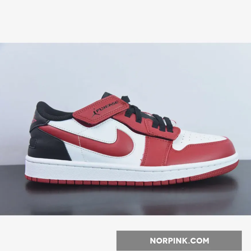 This new Gym Red iteration of the Air Jordan 1 Low FlyEase comes dressed in a color scheme and color blocking that will have some of us thinking about the beloved Jordan 1 Chicago. Gym Red is seen on the mudguard, lace overlays, and Swoosh, with Black seen on the nylon tongue, heel counter, and heeltab. The Wings logo is seen on the heel in Gym Red as well as on the Jumpman on the tongue tag and the Jumpman and FlyEase branding is seen on the lateral side. White and red meet again on the midsole and outsole to complete the aesthetic assemblage.