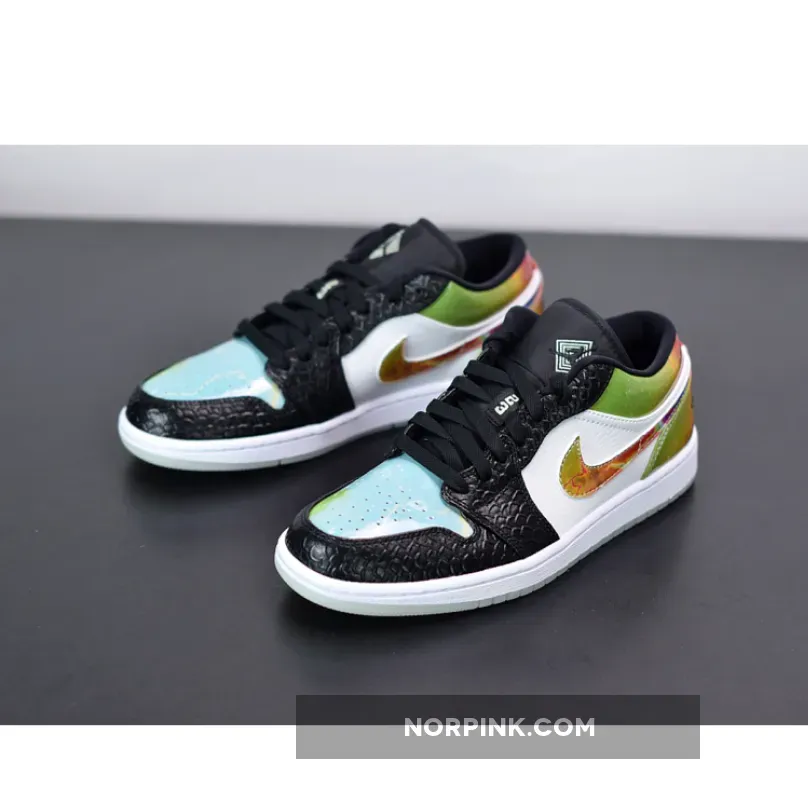 “I’m super hyped about the Air Jordan 1 Low ‘Galaxy’ – the black snakeskin overlay is fire, the turquoise graphic is fresh, and the galaxy print on the Swoosh is on point. Love the glow-in-the-dark outsole, solid choice for sneakerheads who want to slay the streets!” – Jordan23 ICON