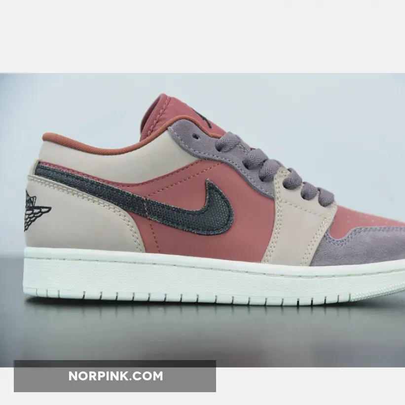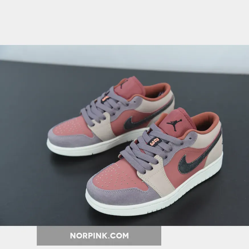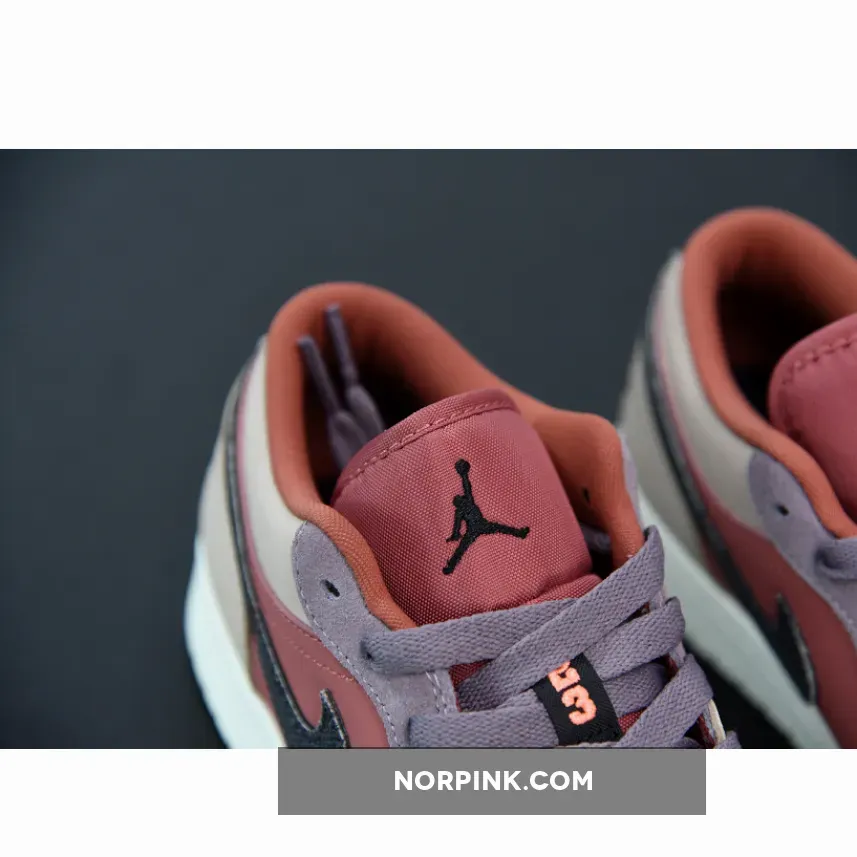 Dressed in a Canyon Rust, Black, and Purple Smoke color scheme. This low-top Air Jordan 1 features Canyon Rust covers the nubuck toes and side panels along with its mesh tongues and inner lining. Additional details includes Purple suede overlays on the eyelets and toe with matching laces. Black embroidered Jumpman and Wings logo on the tongue and heel, respectively, paired with a textured Swoosh on the sides atop a Sail rubber sole completes the design.