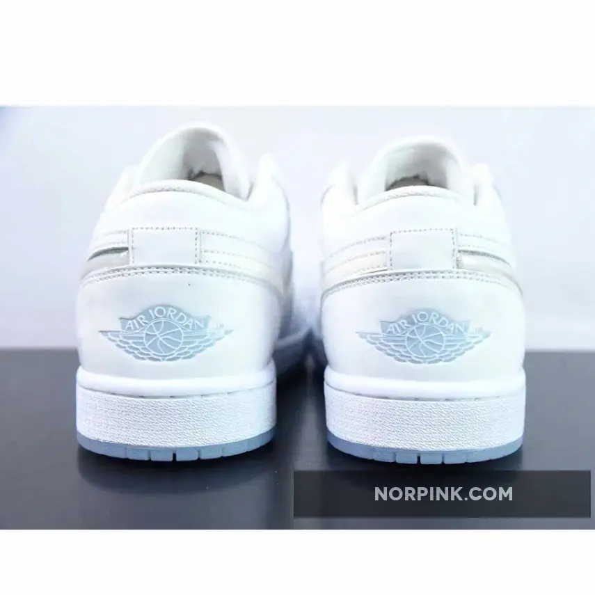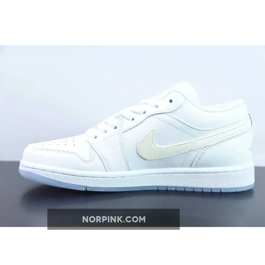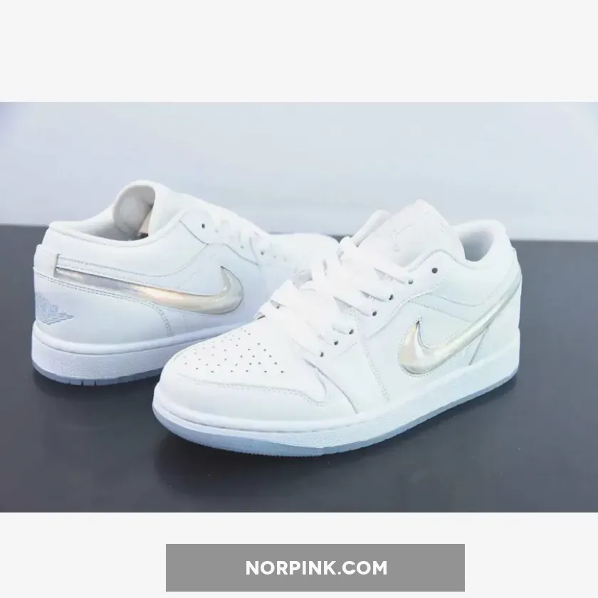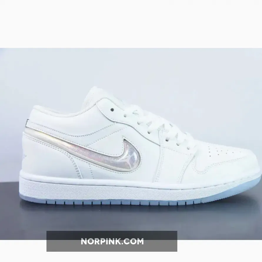 Featuring a clean White leather upper, the shoe ensures breathability with toe box perforations, matched by mesh tongues and inner lining. Shimmery iridescent glitter Swooshes shine on the lateral side, while a Sail-colored Swoosh graces the medial. Similar to the effect of a snow globe, the bulbous iridescent profile swooshes house hundreds of shimmering specks of glitter that fill each portion of the check with each step.