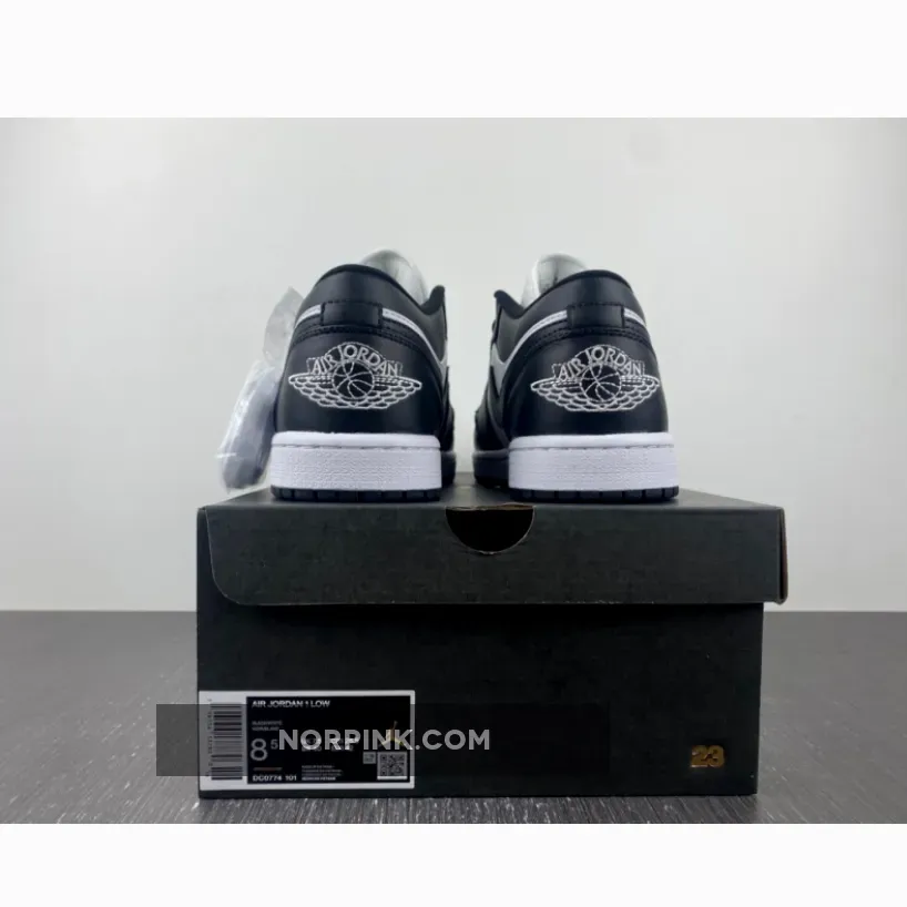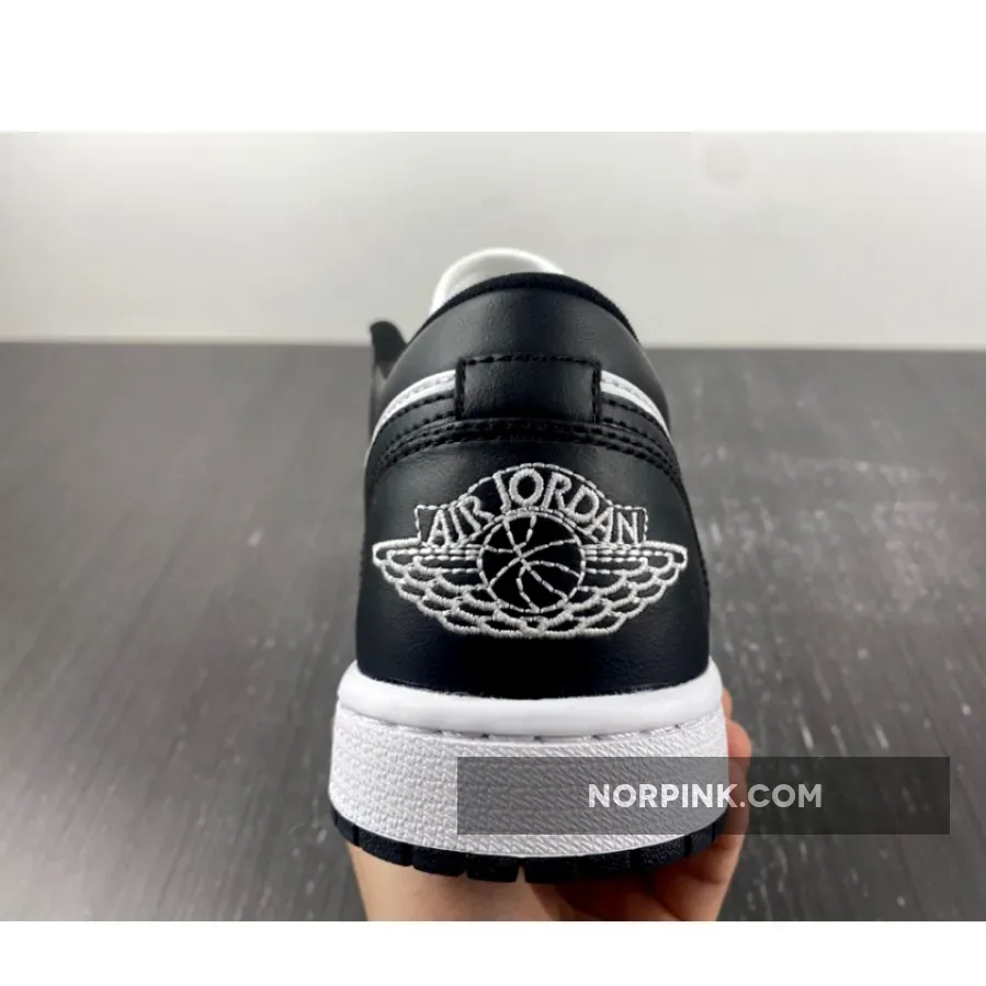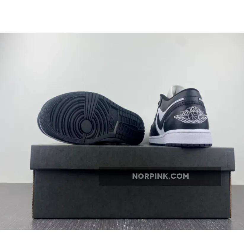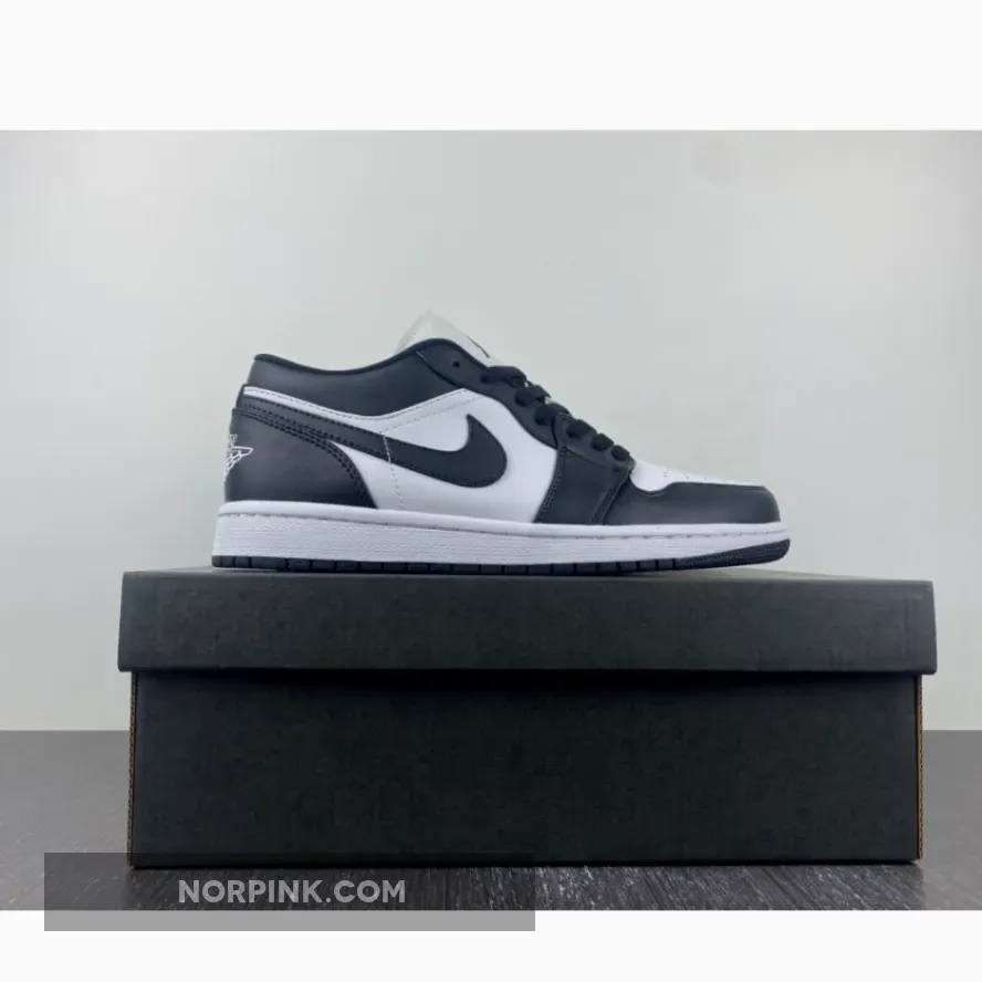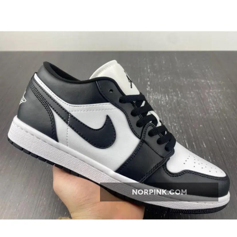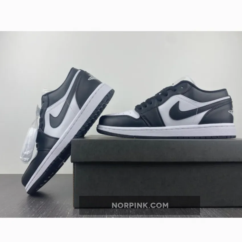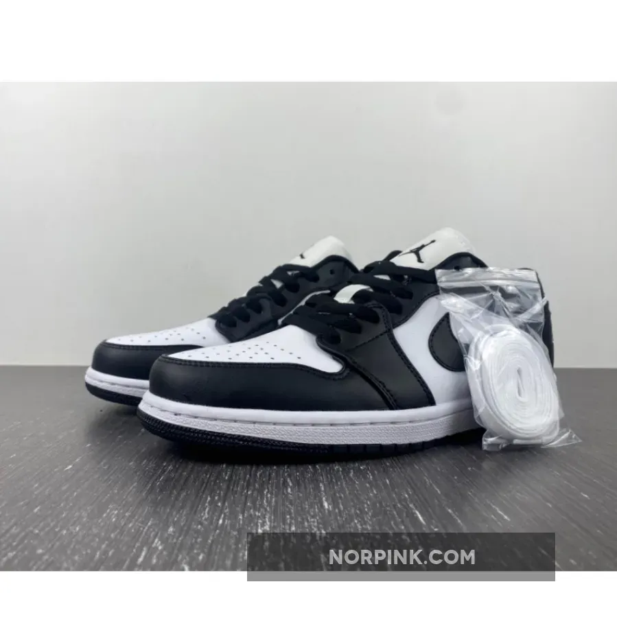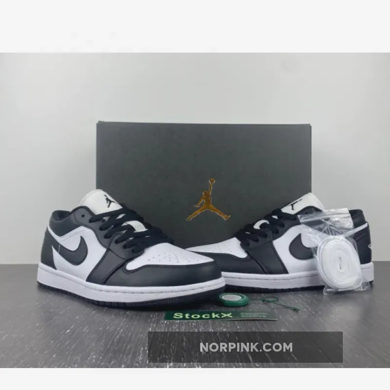 Crafted with leather, the silhouette follows the traditional “Panda” colorway of a white base and contrasting Black Jumpman adorns the tongues, White hits the Wings logo, insole branding, and midsole to finish the look.. White appears on the base, and Black fills in the overlays, Swoosh logos, and the rubber outsole. The shoe rests on a white midsole and black outsole and is tied together with black laces for that clean, monochromatic finish.