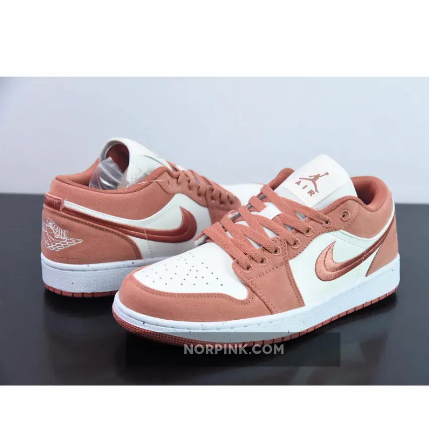 This shoe sees the classic low-top shoe come dressed in a white and peachy color scheme. This offering of the Air Jordan 1 Low comes constructed with a leather base and canvas overlays to give off a premium feel. Finally, embroidered Swooshes on the sides, signature Jumpman branding on the tongues and insoles with Wings embroidery on the heels., a white midsole, and matching coral-colored rubber outsole rounds out the aesthetic.