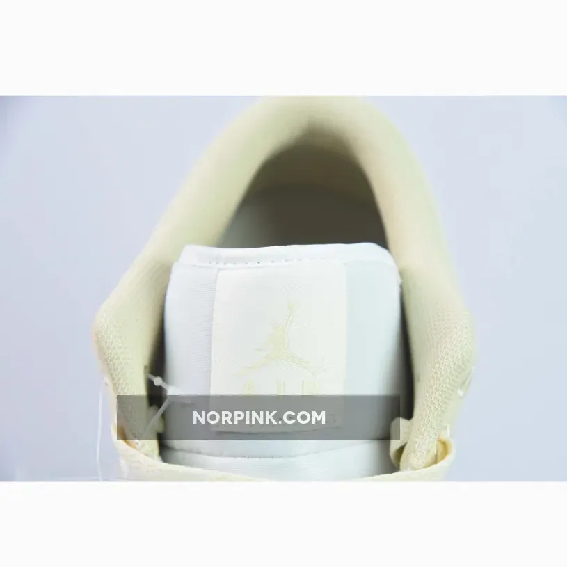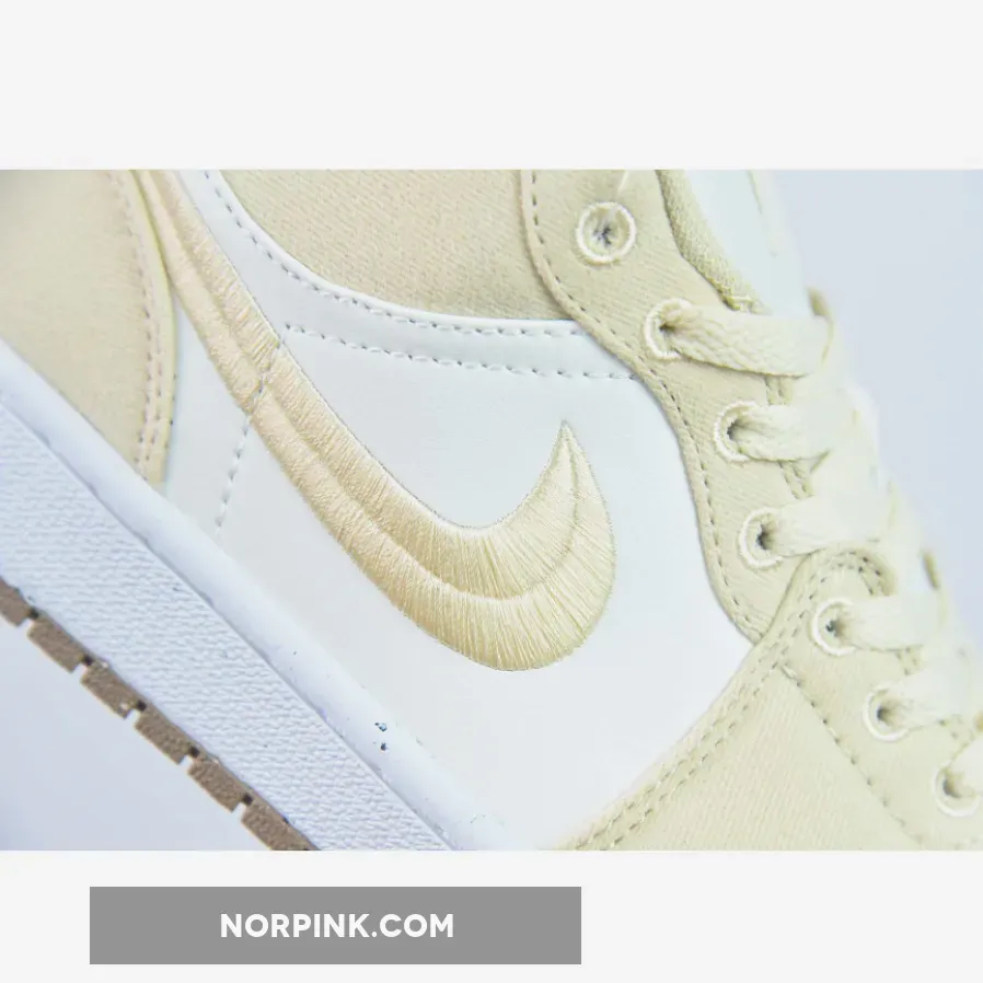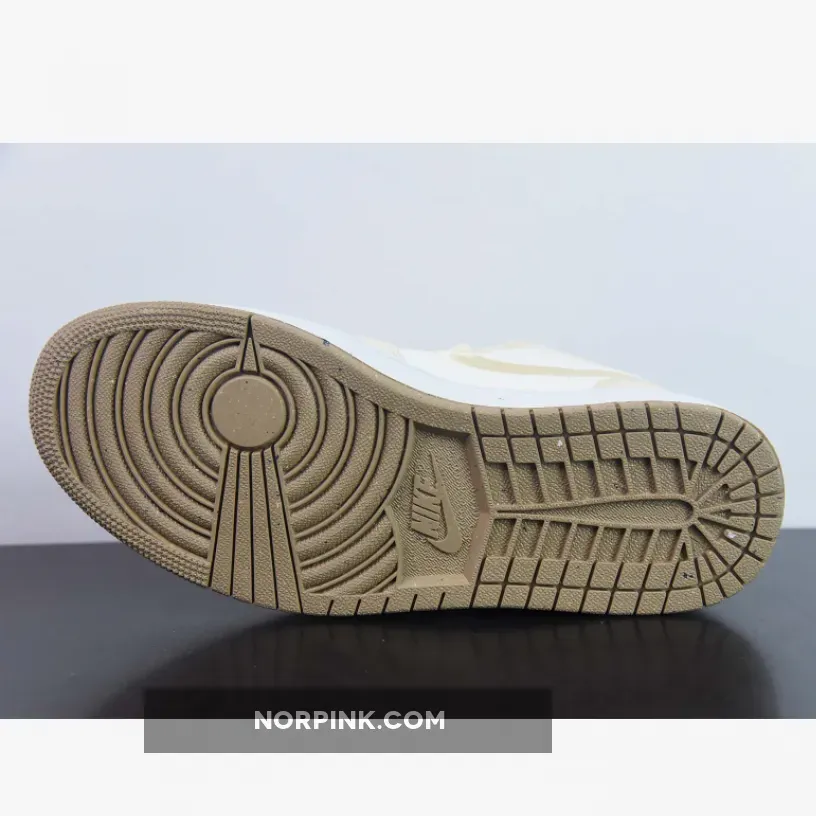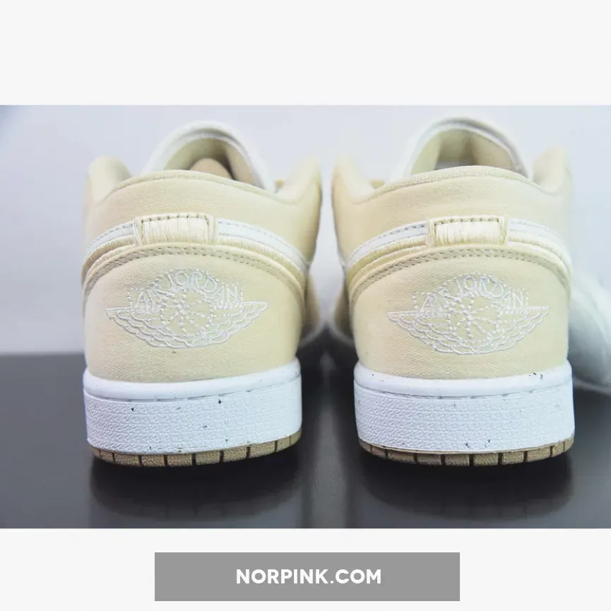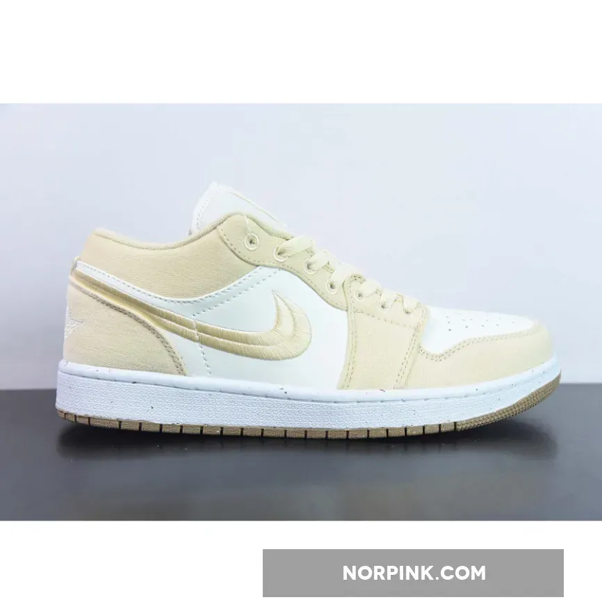 This Air Jordan 1 Los starts off with a cream-like hue on the leather base on the upper while the highlight tan/linen canvas takes care of the overlays, resemblance to the recently-unveiled “Celestial Gold” colorway.