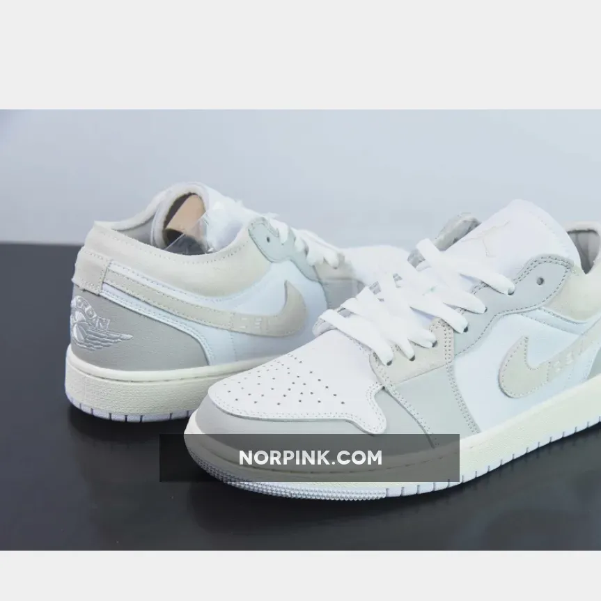 The SE Craft Inside Out Tech Grey Jordan 1 Low has an upper composed of a variety of materials, including textured leather, suede, and synthetic materials. The lacing system provides a secure fit, while the collar and tongue are padded for comfort. The midsole of the shoe is responsive and padded, providing impact absorption and support. The shoes durable rubber outsole features a multidirectional traction pattern for stability. The sneaker features the Nike Swoosh on either side, Jumpman branding on the tongue, and the Air Jordan Wings logo on the heel.