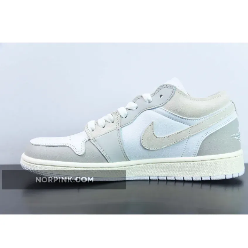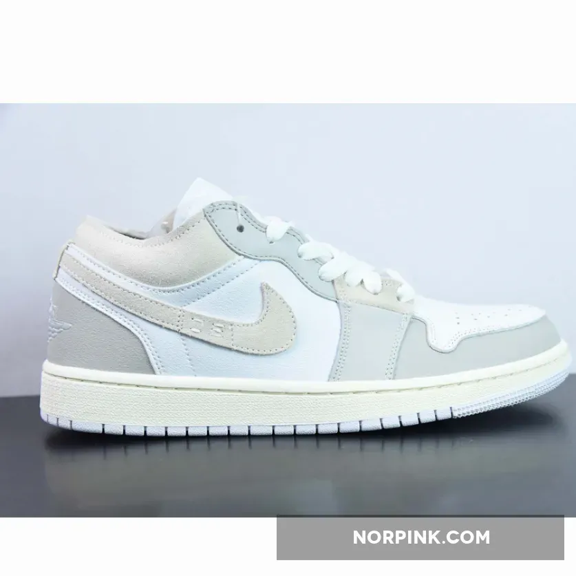 The Jordan 1 Low SE Craft Inside Out Tech Grey comes in a Tech Grey, Light Orewood Brown, White, and Sail color palette.