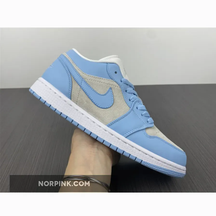 With its lightweight feel and airy colourway, wearing the Air Jordan 1 Low University Blue is as close as you’ll get to walking on clouds. Grey suede sets the stage as it covers the toe boxes and quarter windows, while the Swooshes and leather reinforcements at the forefoot, eyestays and heel take on the famous UNC “University Blue” shade inspired by Michael Jordan’s alma mater.