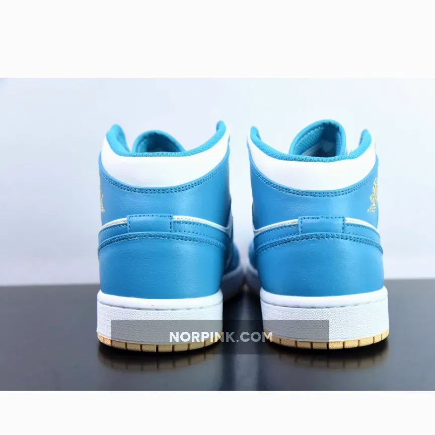 We think that one of the standout features of the Jordan 1 Mid Aquatone is its colorway. It features a mixture of Aquatone and white colors, with Celestial Gold accents on the branding. The shoe was released on March 1st, 2022 at a retail price of $125.