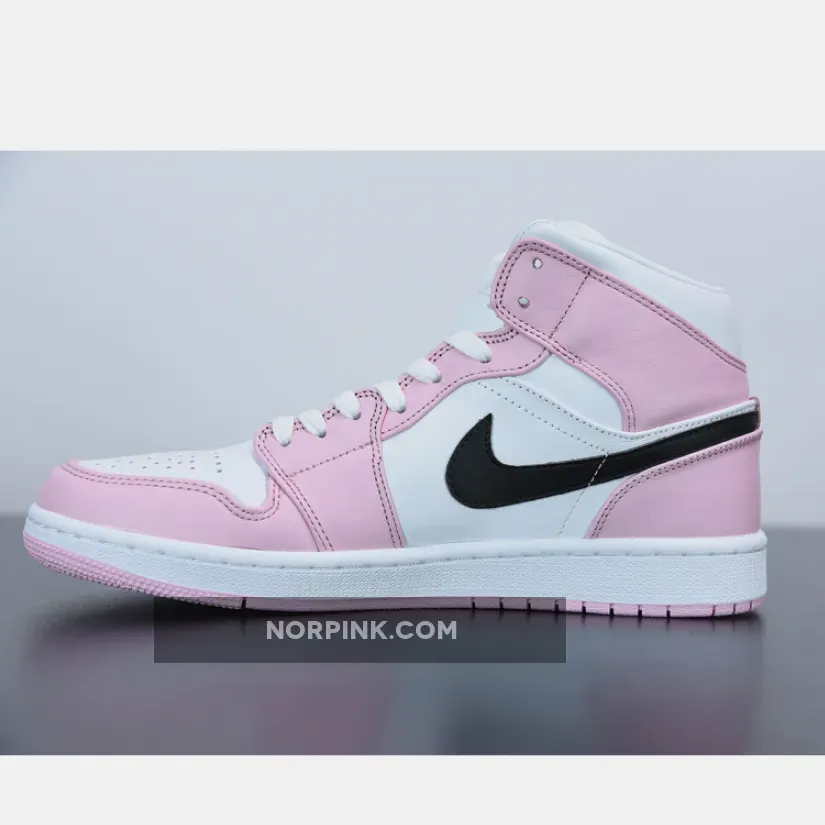 Michael Jordan’s famous Jordan 1 basketball sneaker is undeniably one of the most influential sneakers to ever grace the footwear industry. Initially released in 1985, the silhouette looks as good today as it did back then, whether it’s the low, mid, or high-top version. As for the latest iteration, the Jordan 1 Mid Barely Rose Womens is definitely one of the cleanest colourways we’ve seen in a while.Working on a mid-top profile, this AJ1 Mid is done up with supple leather textiles throughout, giving the famed basketball shoes a premium feel. Sitting atop a pristine white base, panels around the toes, eyestays, and rear segments indulge in a soft lilac-pink hue. The subtle look is then highly contrasted with black Nike Swooshes shooting across the lateral and medial sides.