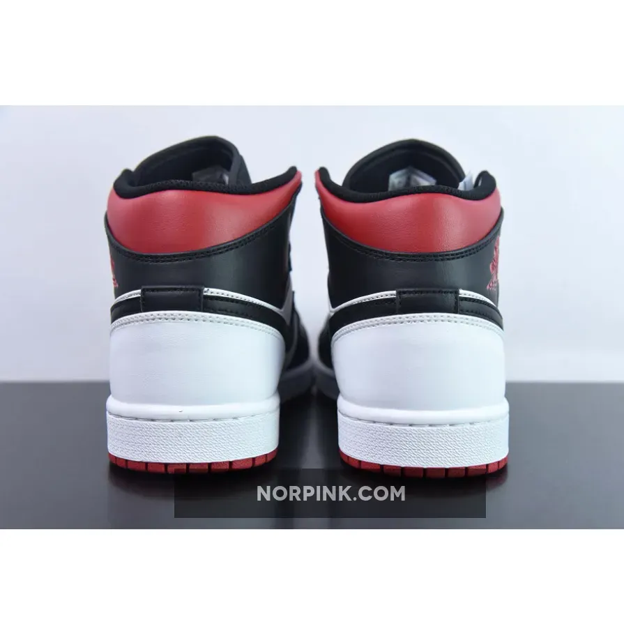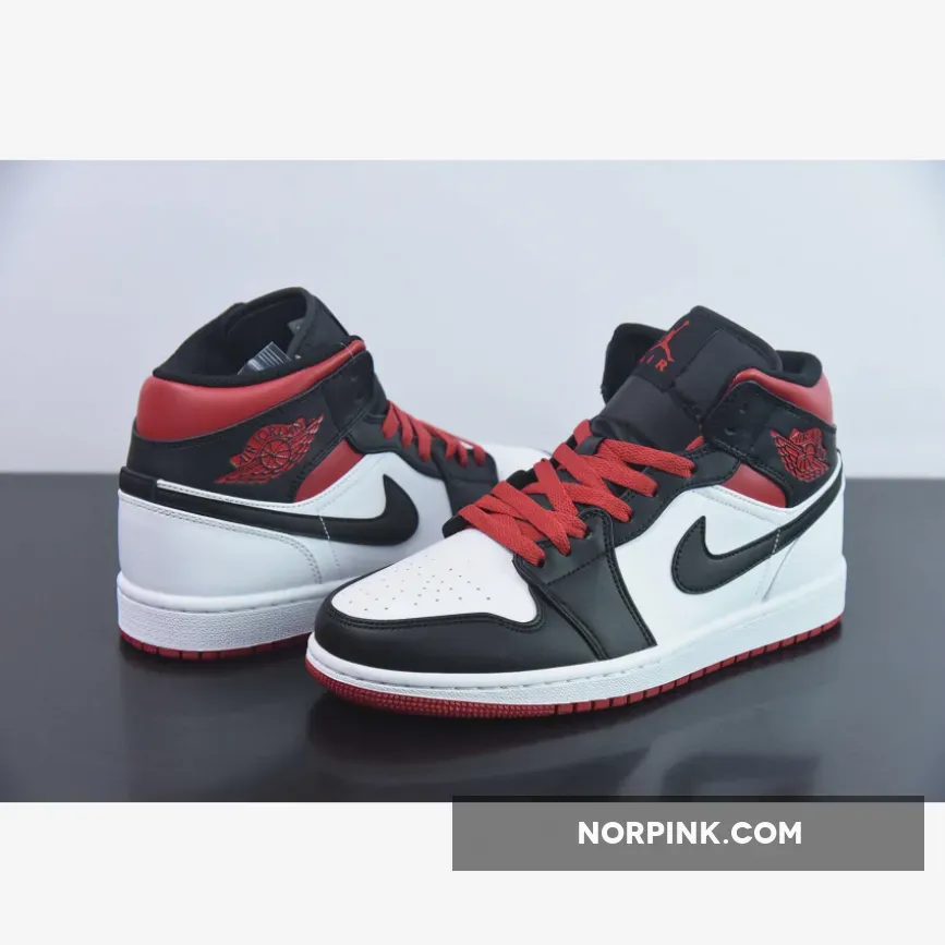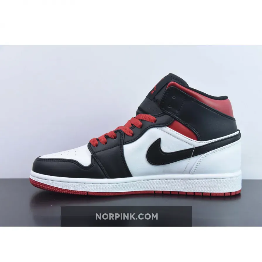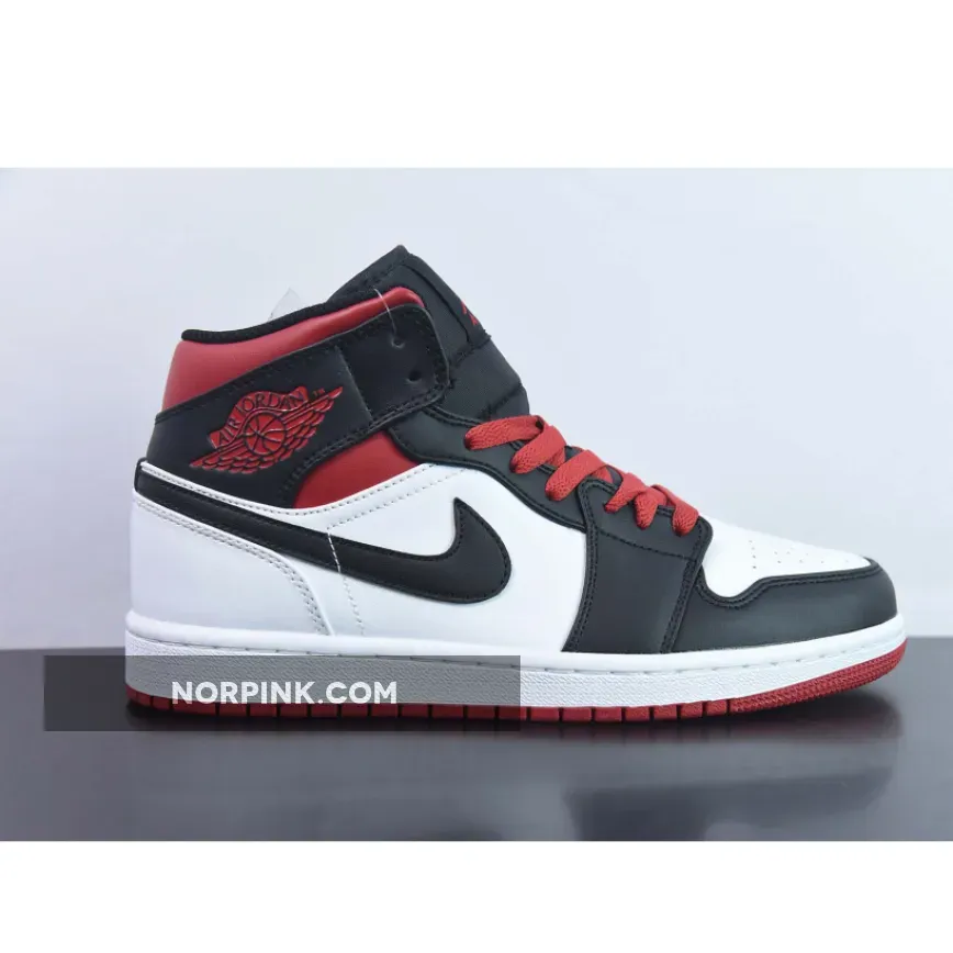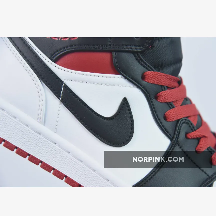 This Air Jordan 1 Mid is introduced in another clean colorway as this rendition boasts the favorable color scheme of white, black, and red tones.