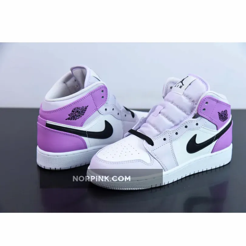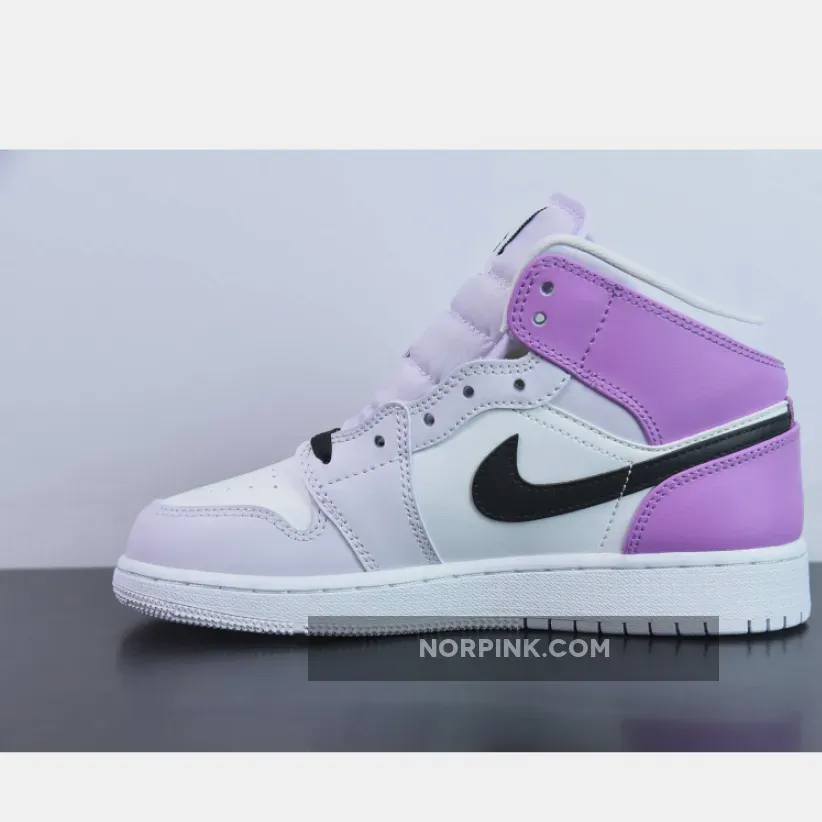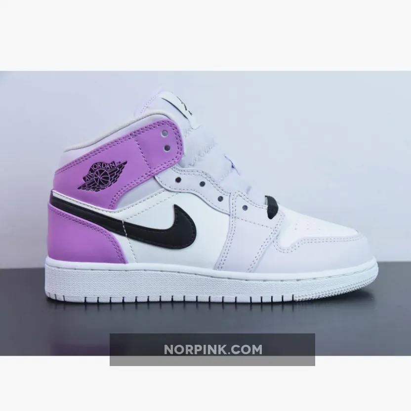 A new grade school colorway of the Air Jordan 1 Mid with this Pink Lavender offering. Constructed out of a full leather build throughout the upper, this Air Jordan 1 Mid gets hit with a pristine White hue on the base while a light shade of pink is seen on around the toe and a brighter shade is then placed on the ankle/heel portion of the shoe.