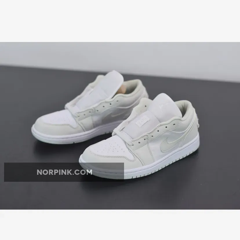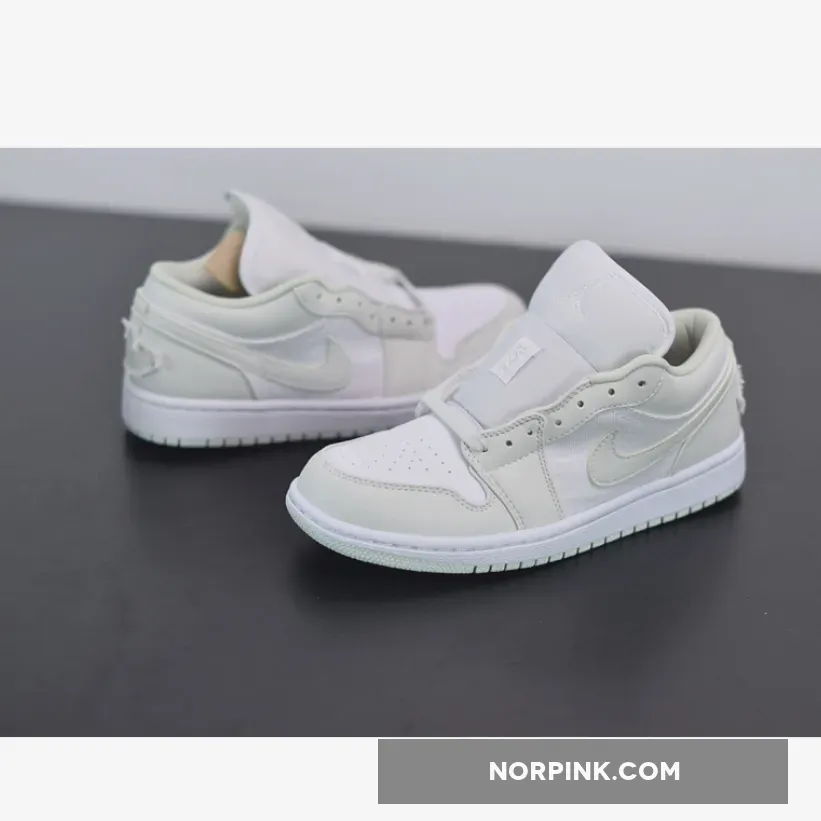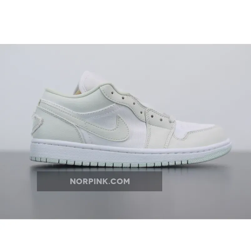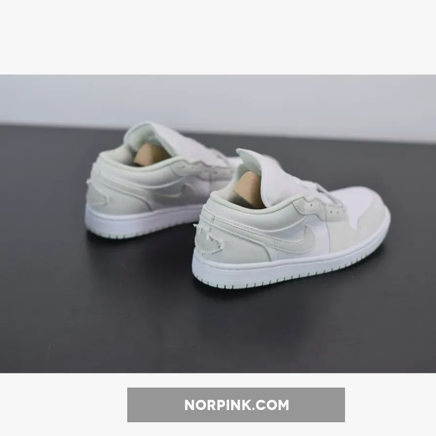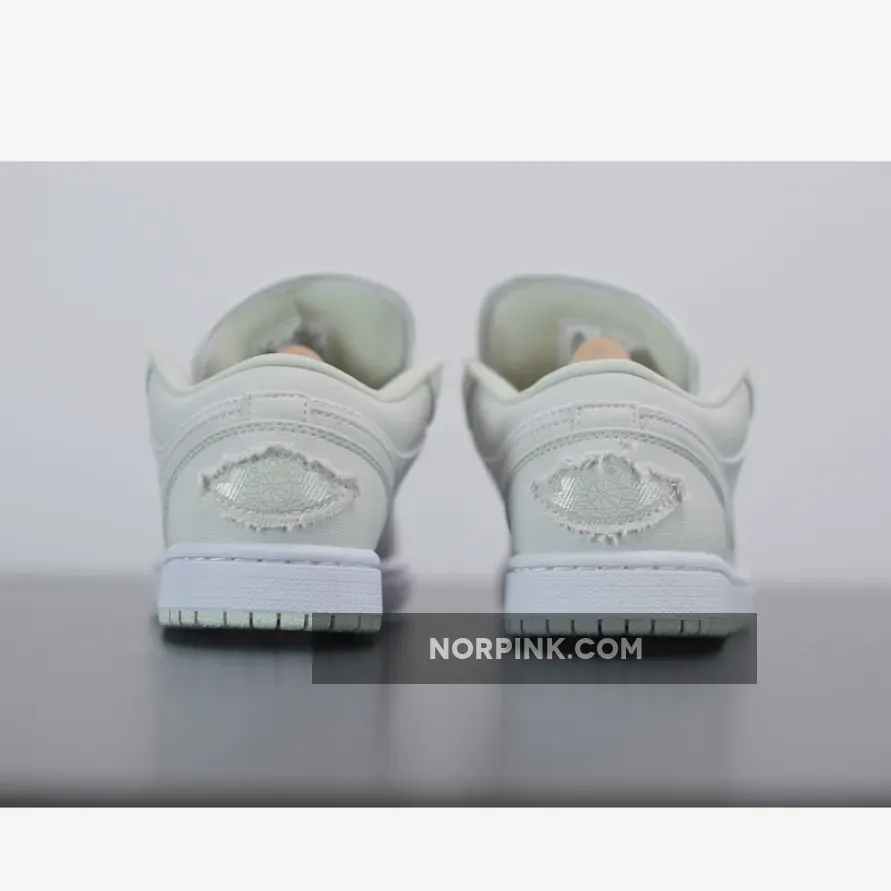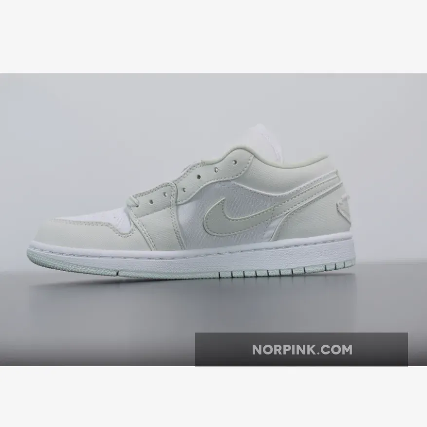 Recently surfaced on the Jordan 1 Mid, the pastel-green hue covers all of this pair’s canvas twill overlays: mudguards, quarter panels, profile Swooshes, and heel swathes. Everything else uptop, save for Jumpman, “23” and frayed ball-and-wings logos, are done in “White.” Underneath, the Spring-ready vibes continue as colorless midsoles are livened up with “Spruce Aura” outsoles, just as on the aforementioned AJ1 Mid. However, given the Low’s shorter height, it’s unquestionably better-suited for the warmer months than its taller counterparts.