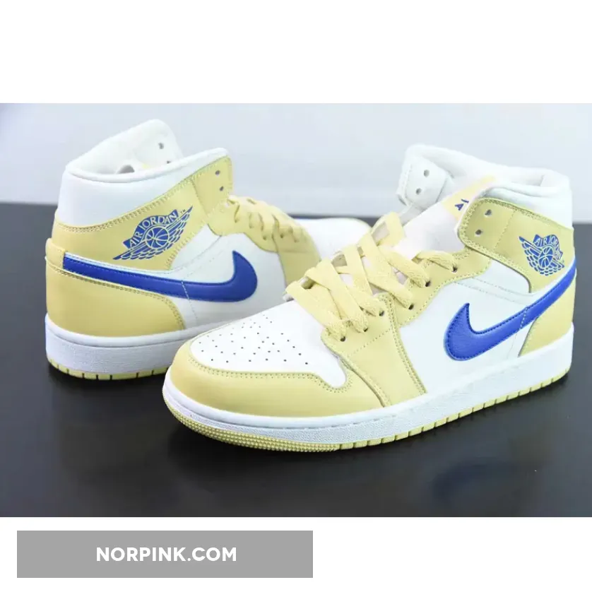 Taking on an official color makeup of Lemon Wash/Lapis-White. This offering of the Air Jordan 1 Mid comes constructed in a full leather build with mesh tongues and lining.