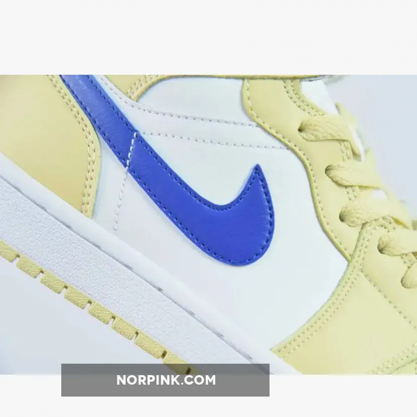 this Air Jordan 1 Mid “Lemon Wash” leans heavily on its titular color, applying its muted yellows across the overlays, outsole, lace unit, and tongue. Underneath, the base clashes somewhat with its bright whites, while the Swoosh, Wings, and Jumpman logo opt to complement in “Lapis.”