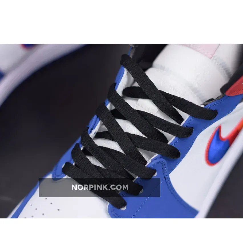 One of those upcoming offerings is this version of the mid-top Air Jordan 1 that’s highlighted with multicolored embroidered Swooshes on the sides. Other details includes a White leather upper with Red and Blue nubuck overlays paired with a Black leather collar and matching laces. A White midsole atop a Blue rubber outsole completes the design.