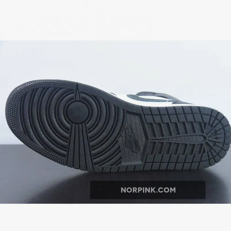 This special edition, mid-top AJ1 pays homage to the iconic Nike Dunk Low “Panda”, featuring a two-tone black and white colour palette. Black leather overlays on the mudguard, eye stay panel and heel panel are complemented by a white leather toe box and mid-panels. A white nylon tongue, on the other hand, contrasts with the black laces.