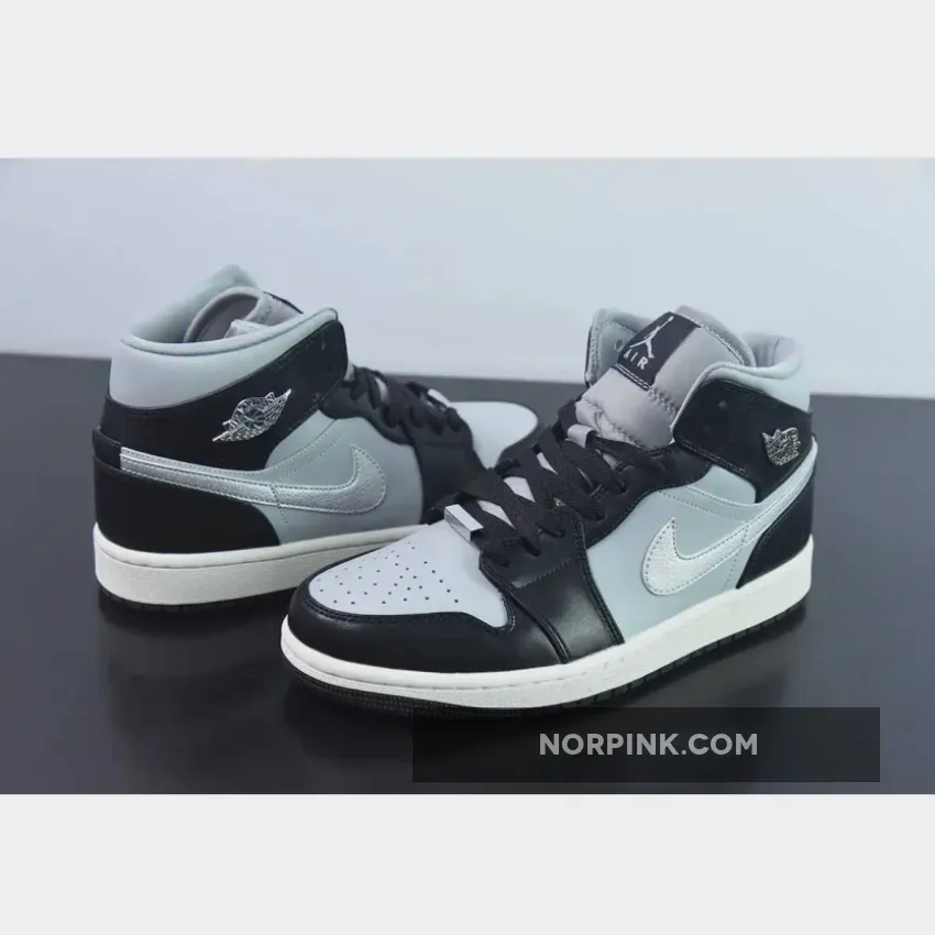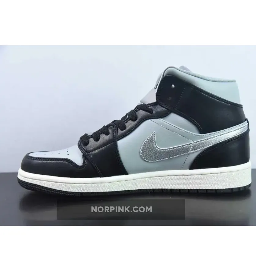The shoe showcases a sleek ensemble of colors, including Black, Metallic Silver, Light Smoke Grey, and Sail. Crafted with luxe full-grain leathers and mesh lining, the AJ1 Mid SE “Black Chrome” provides both comfort and durability. The Light Smoke Grey leather upper creates a stylish tonal backdrop, while the striking Black leather overlays add glossy contrast with a patina-like finish. Notable additions include the Chrome Wings on the lateral ankle and lace dubrae, adding a touch of hardware-inspired flair. The vintage charm is further enhanced by the Sail midsole, complemented by a Black rubber outsole that completes the design.