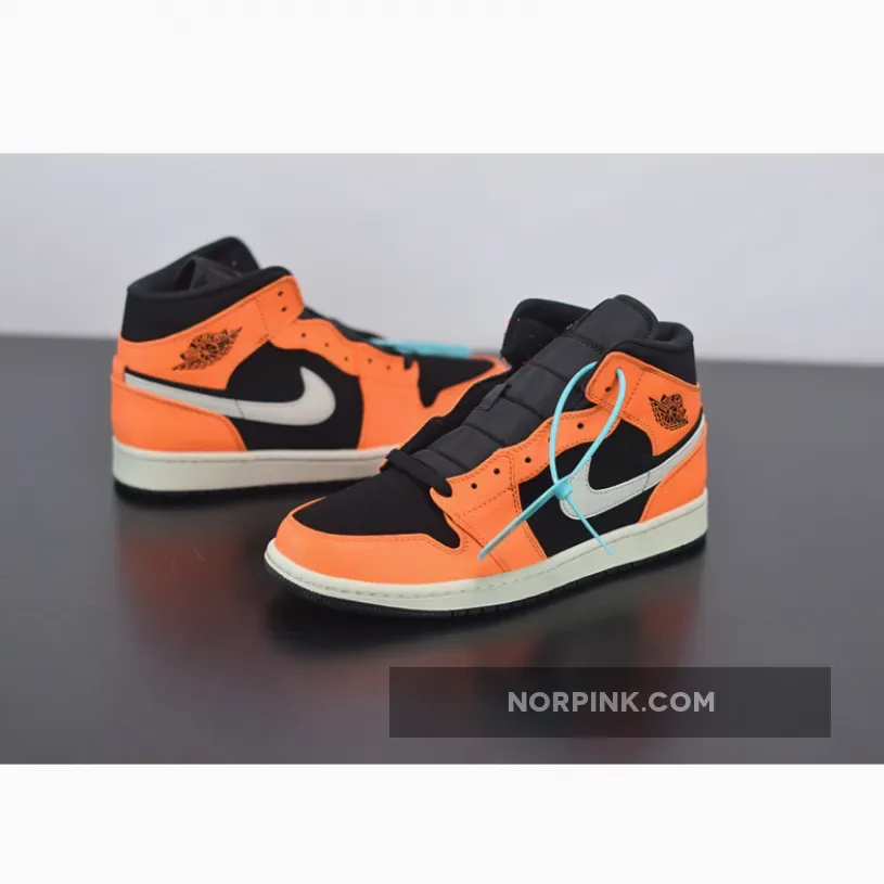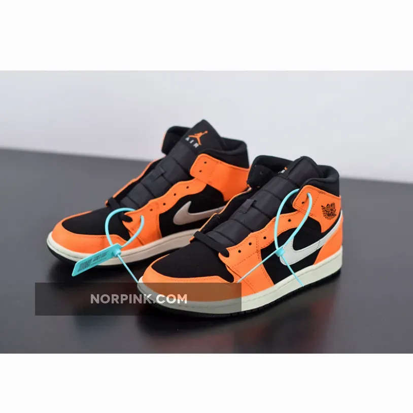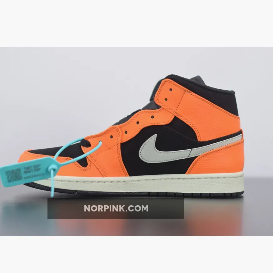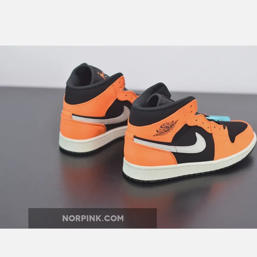 This Air Jordan 1 Mid, dressed in orange and black, takes on a persona very similar to the popular “Shattered Blackboard” style. Black is the base, while orange leather overlays accent the Jordan sneaker. The large Nike Swoosh comes in white, along with the midsole and Jumpman on the tongue. The Jordan Wings logo on the side is embossed in black, and the Air Jordan 1 Mid is finished with a black outsole