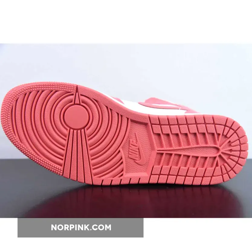 This mid-cut AJ1 has an all-smooth-leather upper with pure white as the base and a candy pink colour on the toe cap, the mudguard, the eyestay panel, the collar flaps, the signature profile Swooshes on both sides of the shoe and the heel counter.