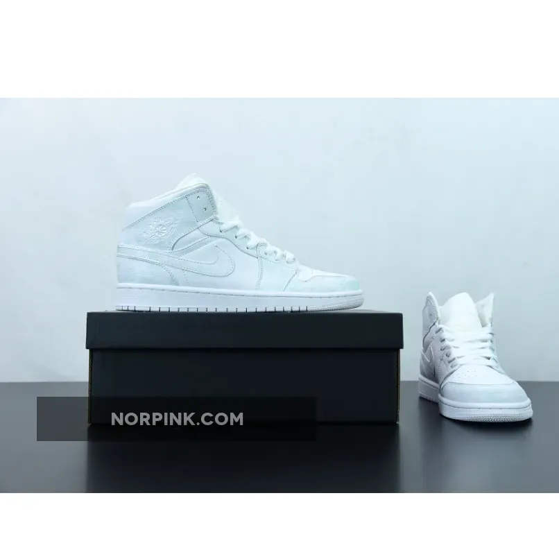 The Jordan 1 Mid Triple White is the latest edition of the familiar silhouette to launch to the masses, and it comes in an ultra-clean whited-out variation. The Air Jordan 1 was first introduced by Nike in 1985 and came as high, mid or low-top offerings. Since then, we’ve seen thousands of great releases and hundreds of excellent collaborations. The signature Jordan Brand wings logo is present at the collar, while a Jumpman is embroidered onto the tongue. Jumpman branding also resides on the insoles for a final touch.
