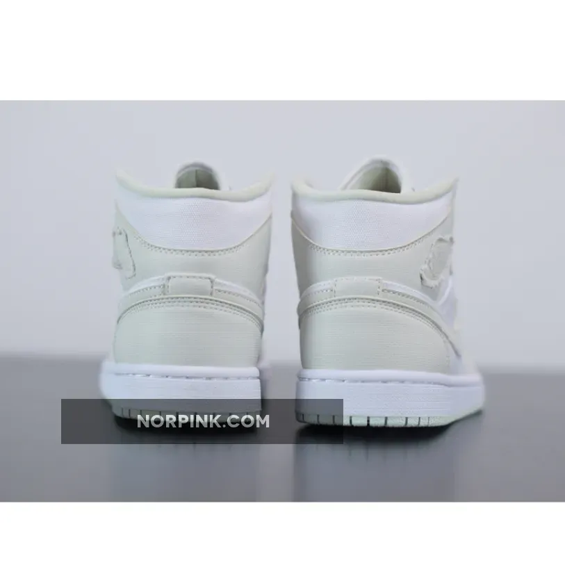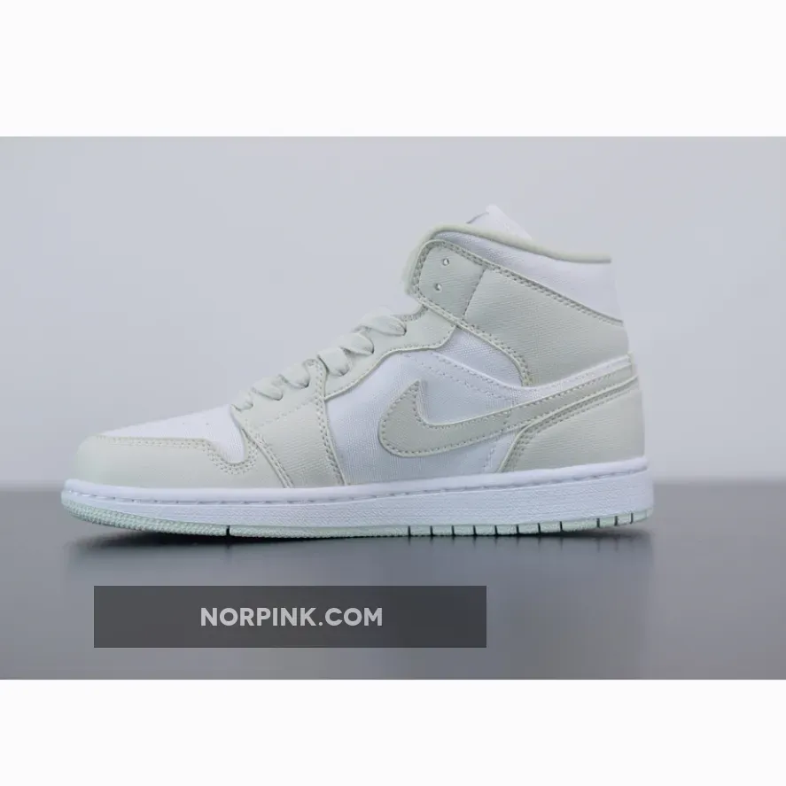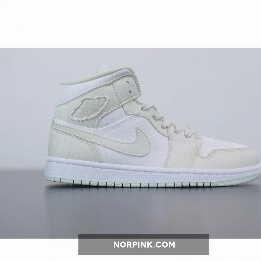 And while not as experimental as aforementioned takes, this newly surfaced women’s iteration also employs an unconventional approach as it presents the Jordan 1 Mid in a far-from-OG color scheme and construction; Light greens and white divvy up toe boxes, lace guards, heel panels, and more, which all boast an atypical canvas twill construction. Branding across the upper gets both the “Spruce Aura” and fabric treatment, but the ball-and-wings insignia on the lateral ankle sports a slight fraying. Bottom halves match their top counterparts in a white midsole/pastel green outsole combination.