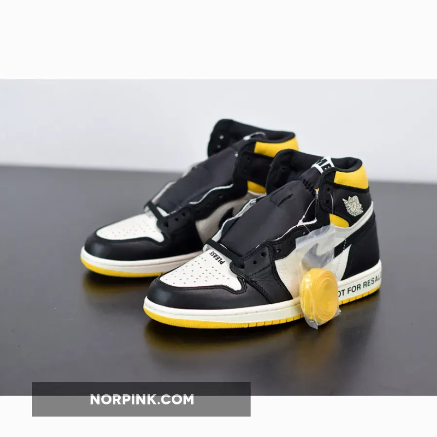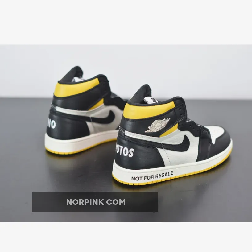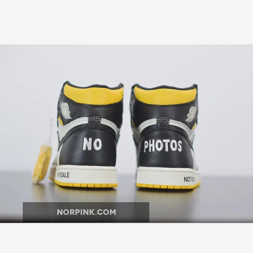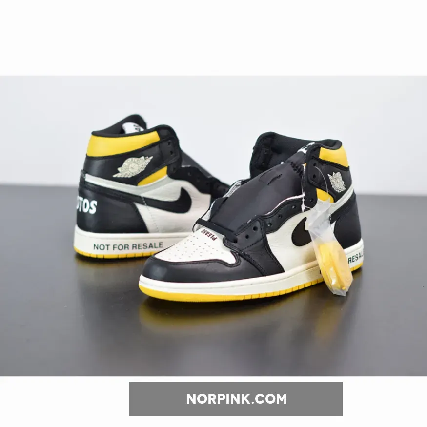 Dressed in a Sail, Black, and Varsity Maize color scheme. This Air Jordan 1 is highlighted with several different texts throughout the entire shoe. Those include “Wear Me” on the tongues, “No Photos” on the heels, “Please Crease” on the toes, “Sorry, This Pair Is Not Numbered” on the inner lining of left shoe, and “General Release” on the right. “Not For Resale” on the midsole, and “No L’s” printed on the insole completes the theme.