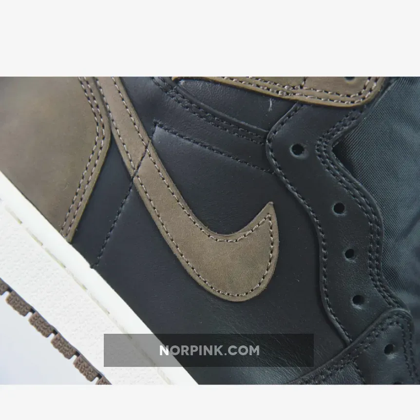 Underfoot, a lighter story takes place as the Jordan 1 tread is dressed in brown, with a sail colour wrapped around the midsole to balance the darker tones of the upper.