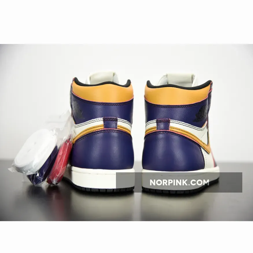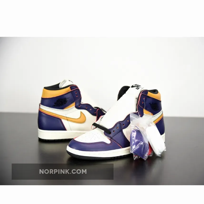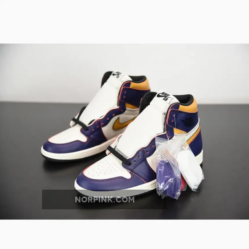 This Air Jordan 1 was originally spotted on the feet of Nike SB team rider Theotis Beasley that comes in a Los Angeles Lakers color scheme. It features a White leather toe box and side panels with Purple trimming along the toe, eyelets and heel, and Yellow on the Swoosh logos and collar. Much like previous Nike SB releases, this one will have a wear away design that looks to have a Chicago-like scheme underneath.