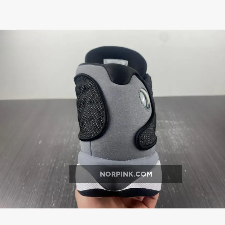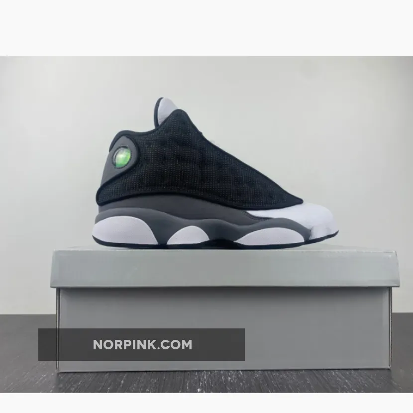 second, the Air Jordan 13 Black Flint features a colour scheme of black, dark grey and white. The signature holographic cat’s eye jewel stands out on the lateral collar with Black 3M reflective mesh on the side panels. An embroidered Jumpman on the oversized tongue creates the only pop of red on the entire upper.