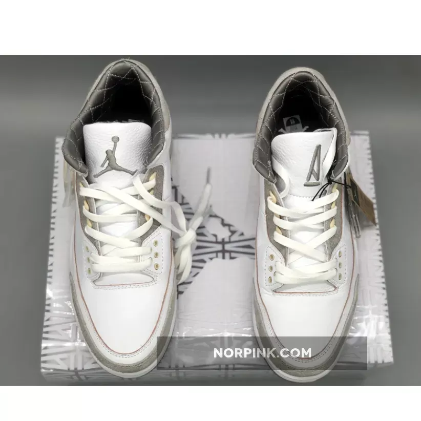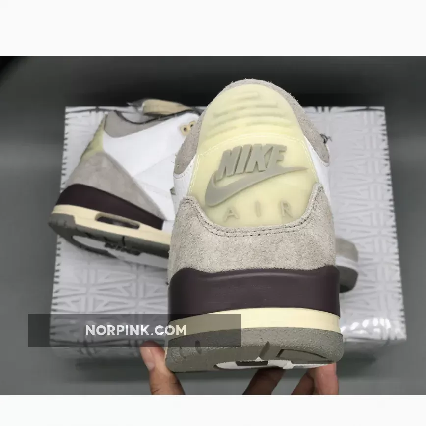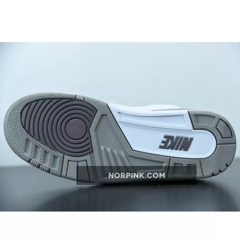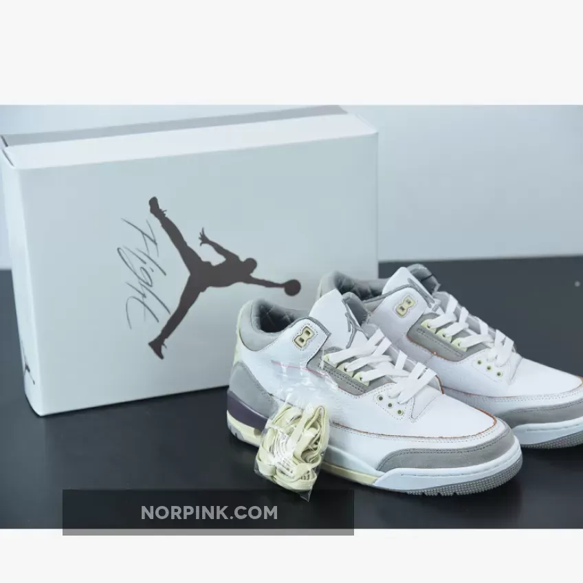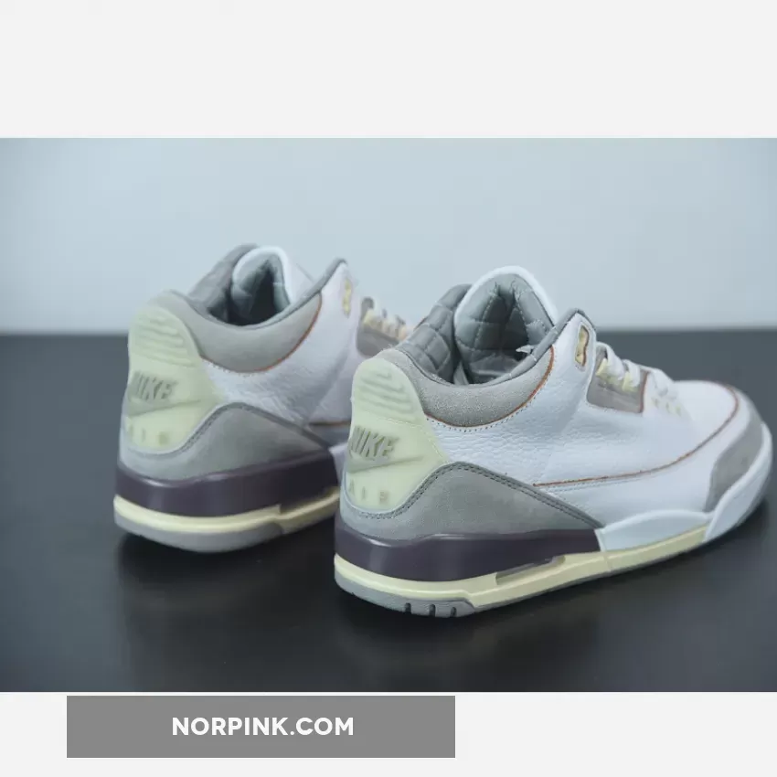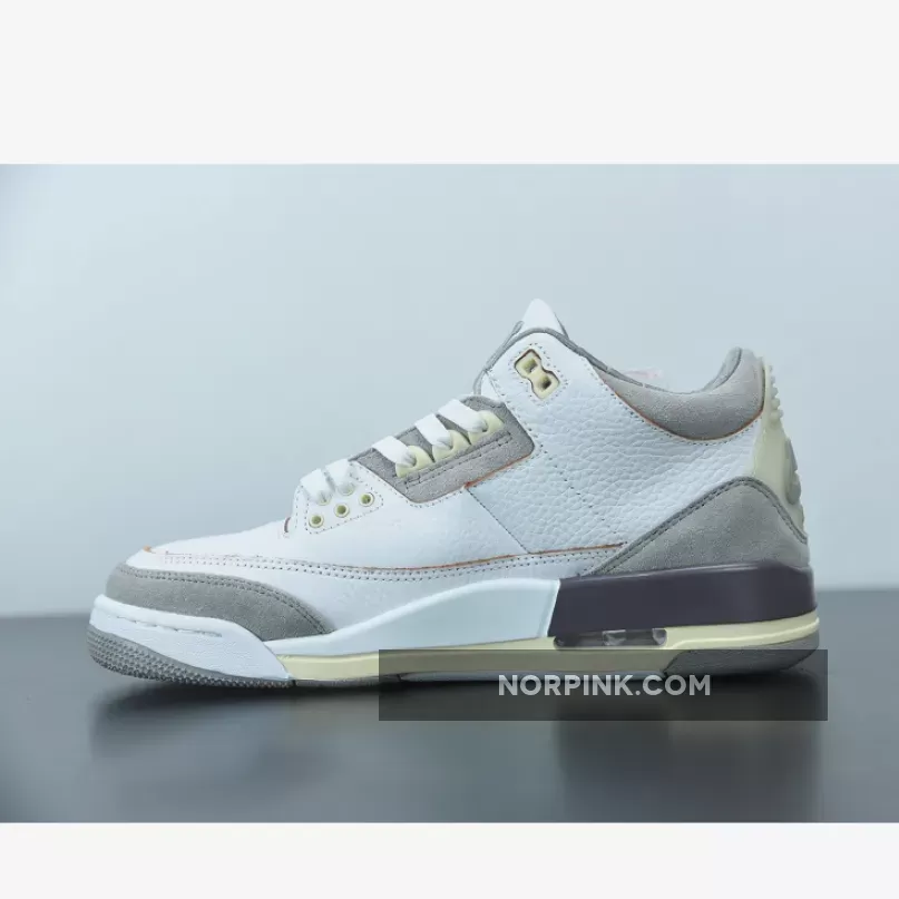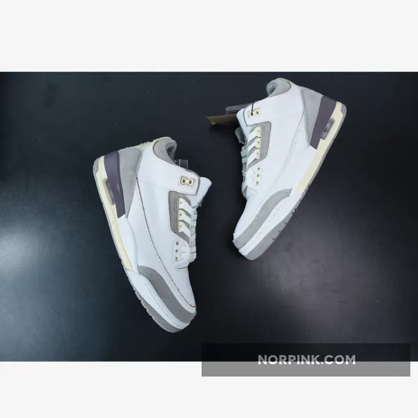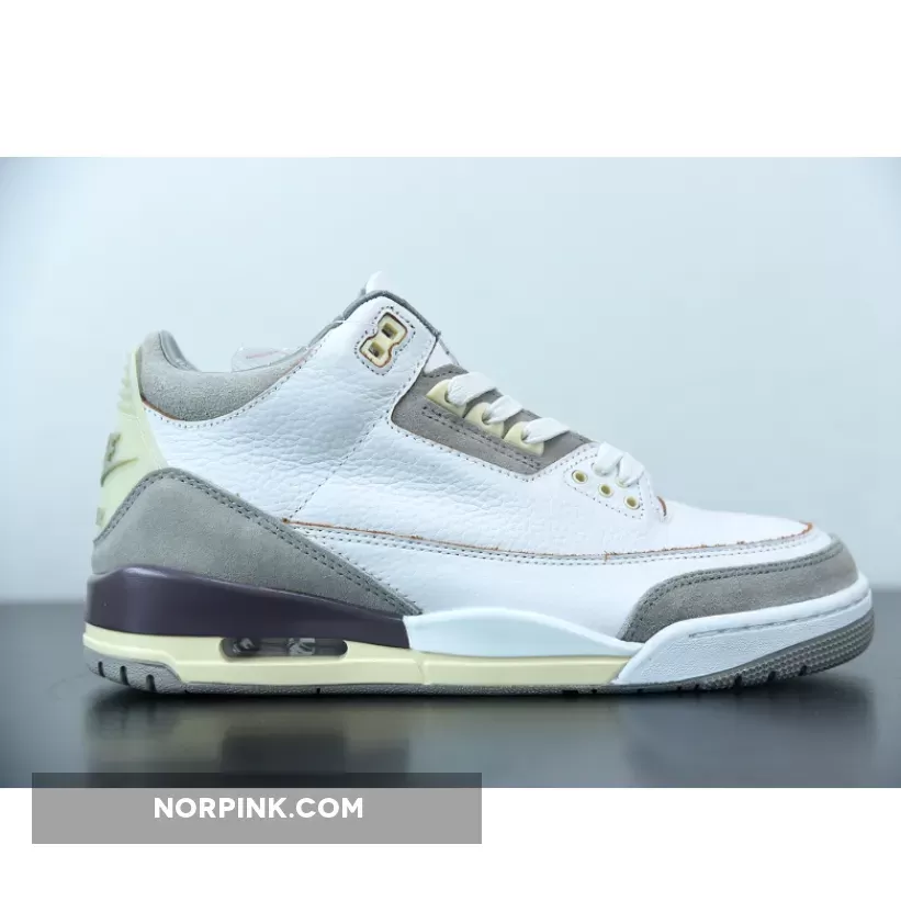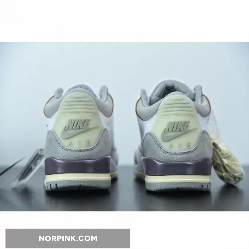 Done up in a White/Medium Grey/Violet Ore colorway, the AJ3 proffers an elegant look with its supple tumbled leather and shaggy suede construction. It also boasts unique detailing like co-branded tongues, artfully-aged heel tabs with OG Nike Air hits and even a quilted satin sockliner.the tongue tab wears the Nike Jumpman logo and branding with pride. Underfoot, visible Air in the heel of the midsole provides cushioning, giving way to a rubber outsole for traction.