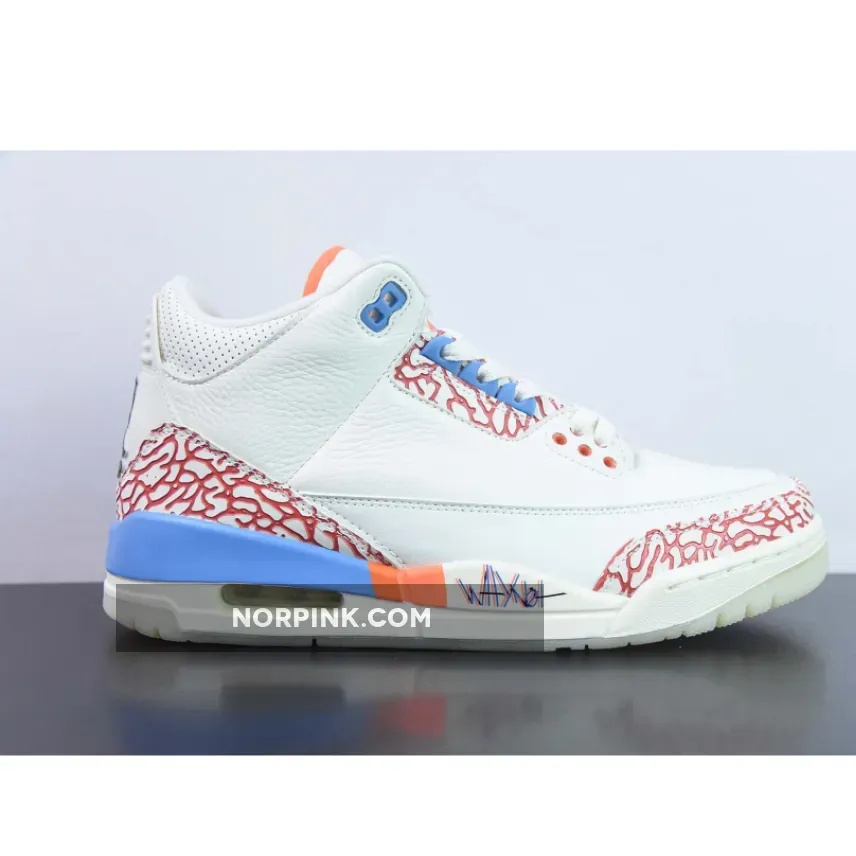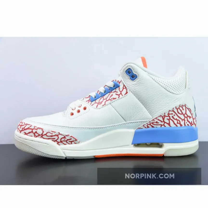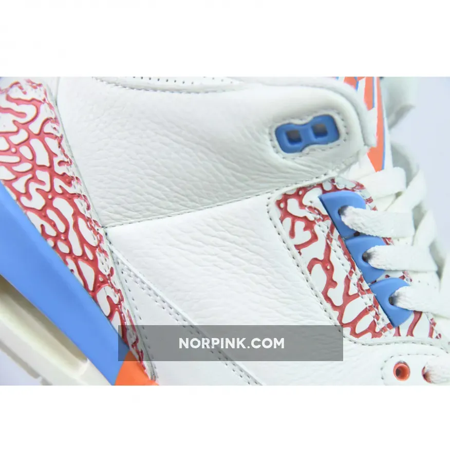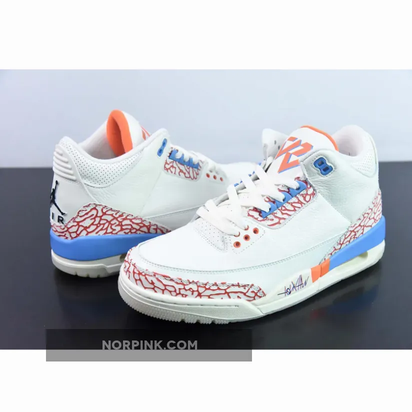 This custom PE uses the colors of the Oklahoma City Thunder as this was Westbrook’s team at the time. The upper is crafted with white tumbled leather and features perforations on the collar and tongue. The sneaker has smooth leather mudguards that showcase Westbrook’s historic stats, meanwhile the lateral midsole features his signature motto “Why Not,” with accents in orange and blue on the elephant print overlays. The tongue features Westbrook’s personal logo, while a black Jumpman logo adorns the heel and insole. A translucent outsole completes the sneaker.