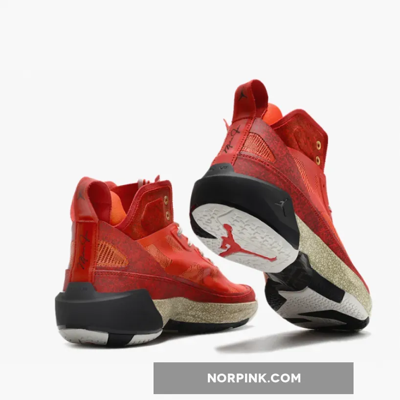 The red upper is made up of Levoweave which brings breathability without sacrificing strength with an exoskeleton built into the upper to bring more support.Now, Hachimura approaches the new Air Jordan 37 for the first time, opting for a bold “Siren Red” colorway. Its Lenoweave upper carries the red throughout with its collar, mudguard and heel counter in a foil finish. Formula 23 cushioning appears at the off-white midsole alongside a visible carbon fiber midfoot shank and Zoom Air strobel unit. As for thematic detailing, Hachimura’s logo appears on the tongue and Japanese-themed sockliner.