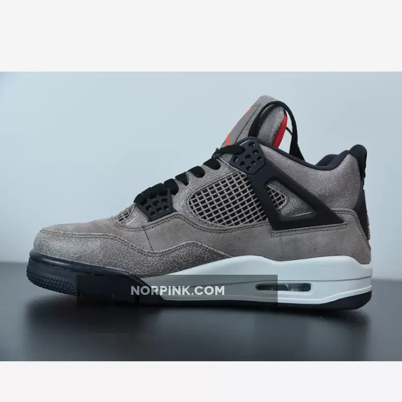 The titular “Taupe Haze” works in-tandem with “Oil Grey” detailing to create an arrangement reminiscent of a mythical Friend’s & Family pair by Travis Scott. Yet, the Jordan 4‘s most note-worthy component has been the cracked construction throughout the forefoot, midfoot and tongue. Given how many wear and tear-away propositions have released in 2020, speculation has emerged that the imperfect paneling may reveal different hues underneath.