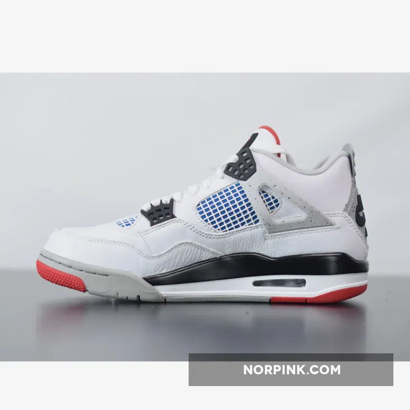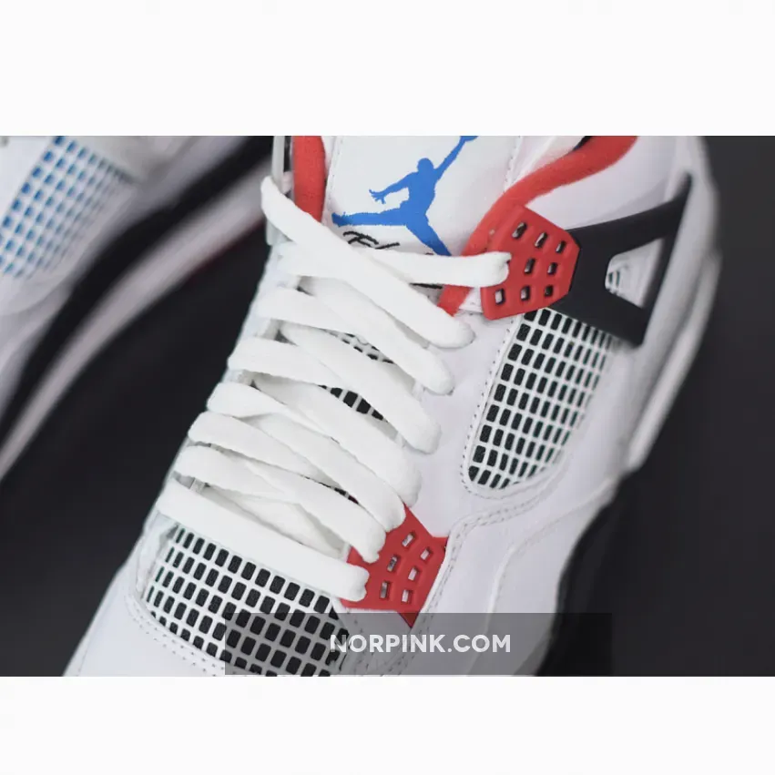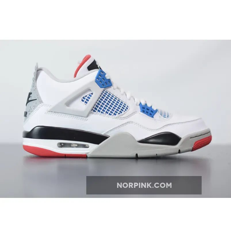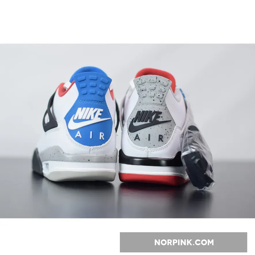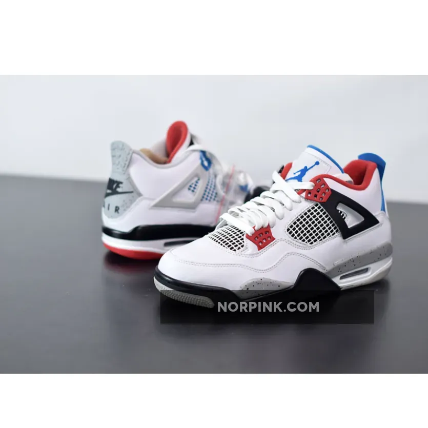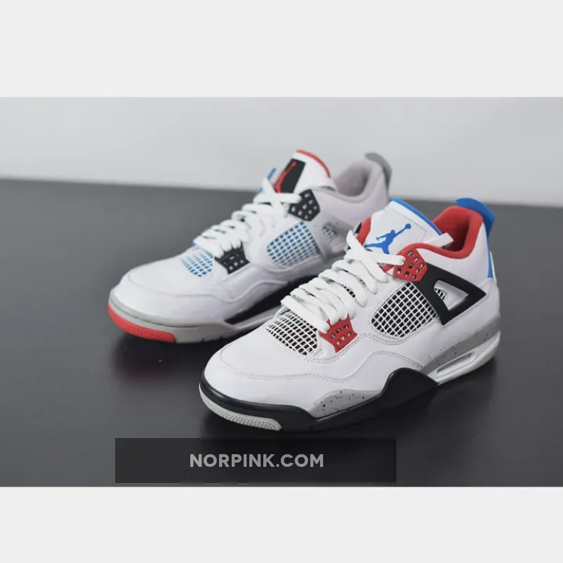 The Nike product with SKU CI1184-146 is a special-edition Jordan 4 Retro What The sneaker. It features a white leather upper with fire red, black, and military blue detailing. A cement midsole, mismatched tongue and heel labels, and contrasting outsoles complete the design. The sneaker was released in November of 2019 and retailed for $200. The design is a mash-up of the most notable Jordan 4 colorways to ever release, including White Cement, Military Blue, Fire Red, and Black Cement. The sneaker is a must-have for sneakerheads and Jordan fans alike.