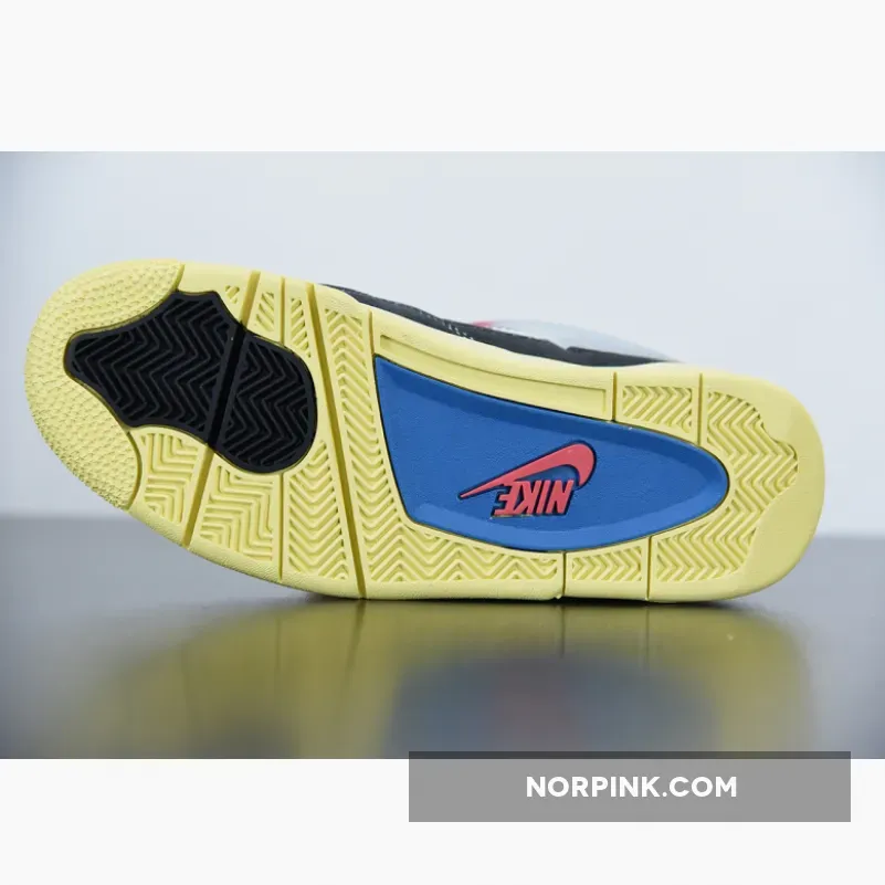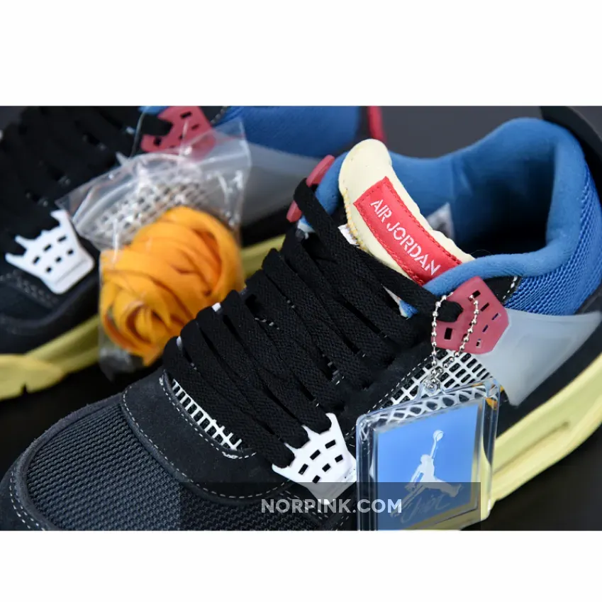 The Air Jordan 4 was famously designed by Tinker Hatfield and is one of the best Nike Air Jordan silhouettes of all time. The collab follows a sail, blue and red colorway, with the translucent wings keeping the laces firmly in place.