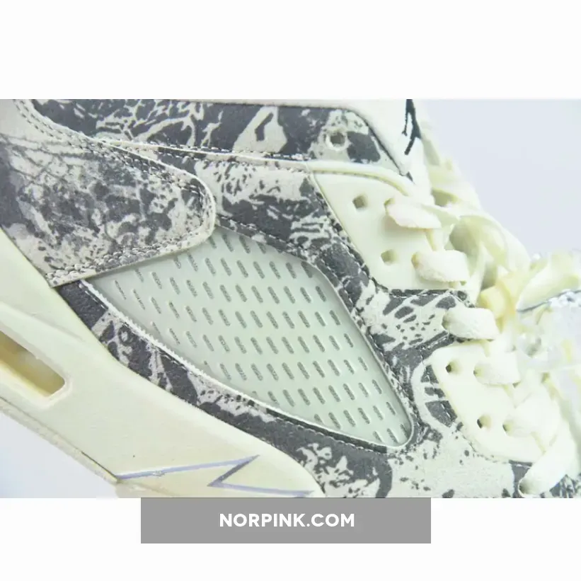 Jumpman branding is seen on the tongue and heel with the quarter panel netting seen in a translucent cream as well. Cream is seen again on the midsole with the P-51 Mustang-inspired teeth seen outlined in silver and a visible Air unit in the heel.