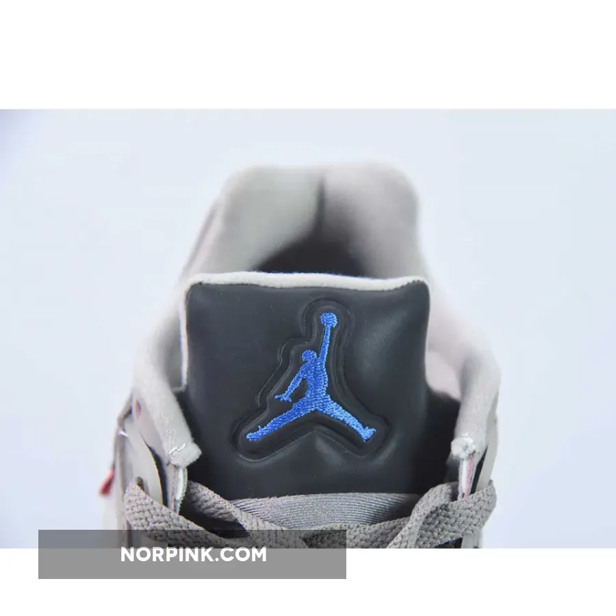 the sneaker uses a tonal grey upper with a black tongue and Game Royal Jumpman. The lace locks are seen in infrared with co-branding throughout.Black hits the tongue and midsole while a red lacelock and icy translucent outsole add additional color to the look.