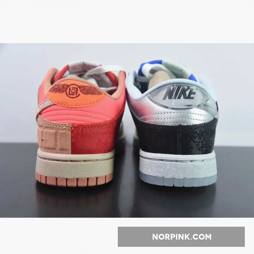 CLOT has worked closely with the Swoosh on countless models, adding silken fabrics to the Air Force 1 and see-through windows to the Air Max 1. All of their efforts culminate in the design of this newly-leaked Dunk Low, whose “What The” style colorway pays homage to the collaboration as a whole.