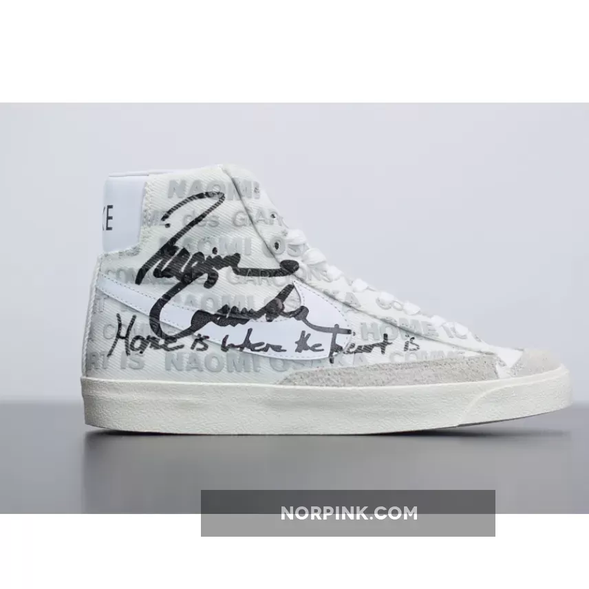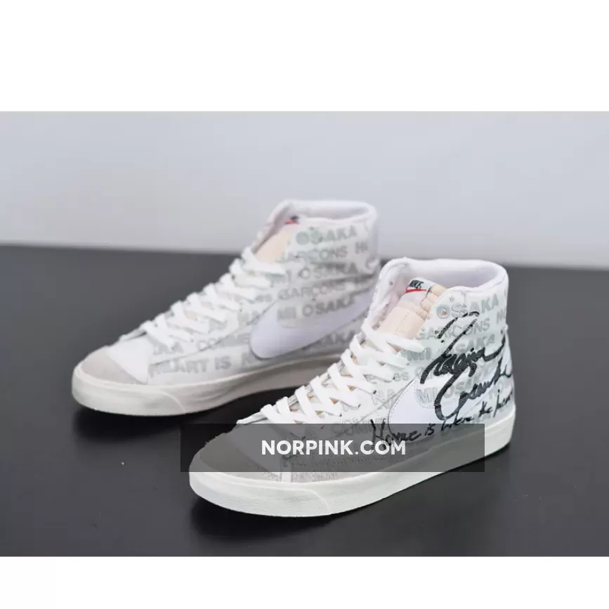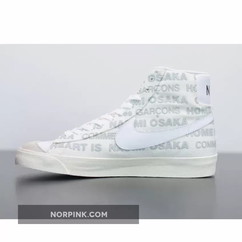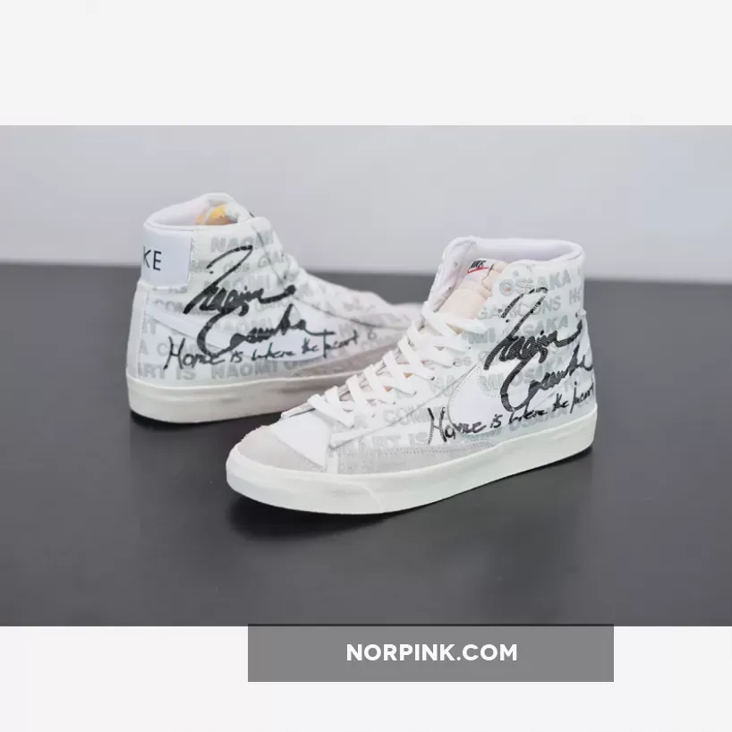 A slight aside to the deconstruction of HOMME PLUS, the Blazer Mid makes use of a base relatively ordinary. The model’s ’77 variant lays as the foundation, featured with a white corduroy that is accented over top by matching leather swooshes and grey suedes. CDG and Osaka then liberally draw atop the entire upper, stamping boldfaced typography of both their names in perpetuity while also penning the athlete’s signature to the profile above a heartfelt message: “Home is where the heart is.”