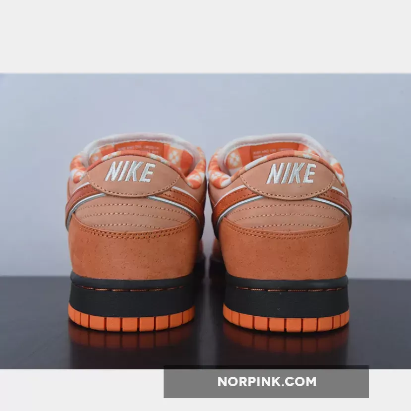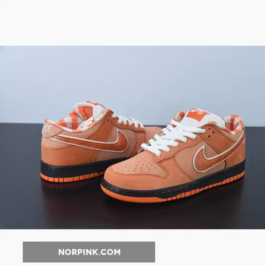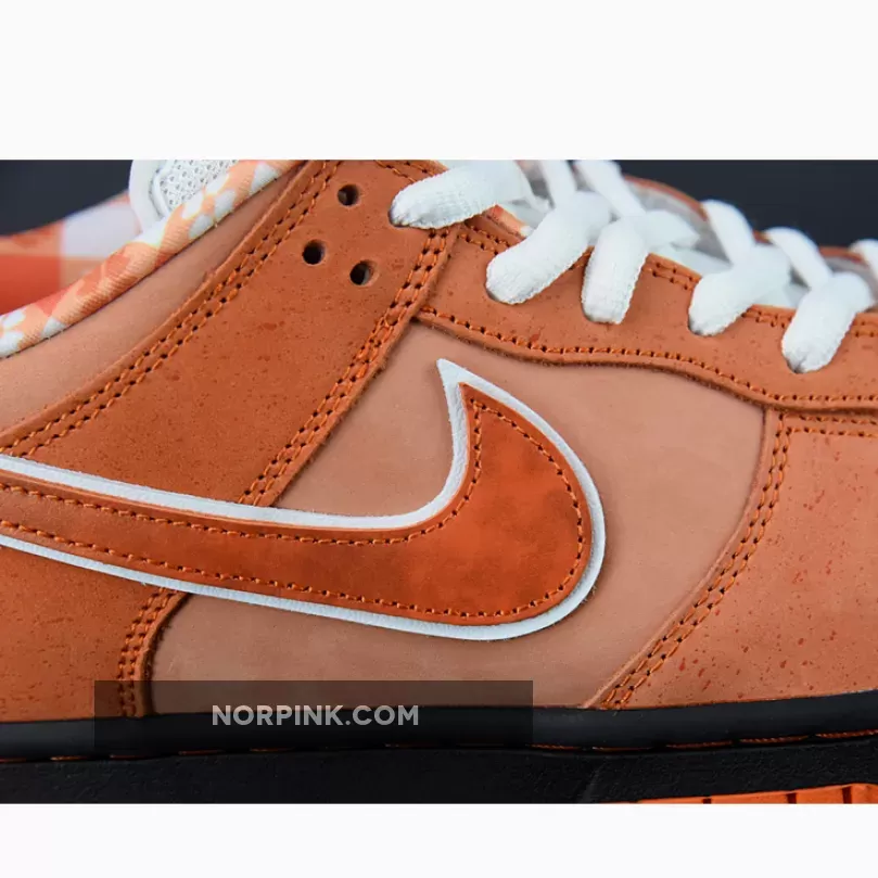 Luxury streetwear retailer, Concepts, has had a famed collaboration with Nike, the “Lobster series”, that has already churned out red, blue, yellow, purple and green colourways. Now, a new variant joins the lineup. Check out the exciting Concepts x Nike SB Dunk Low Orange Lobster. This SB Dunk Low is the closest in colour to the titular crustacean among its siblings. The base of the shoe is a lighter orange compared to the overlays. The profile Swooshes on both sides of the shoe catch the eye with their white outlines that contrast starkly with the rest of the Lobster orange backdrop. The lobster theme continues with a bib-inspired plaid sock liner and a navy rubber band attached to the forefoot imitating lobster claws.