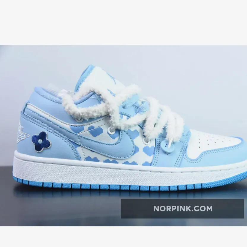 Custom Air Jordan 1 Low “White/Ice Blue – step up your fashion game with NORPINK.COM.